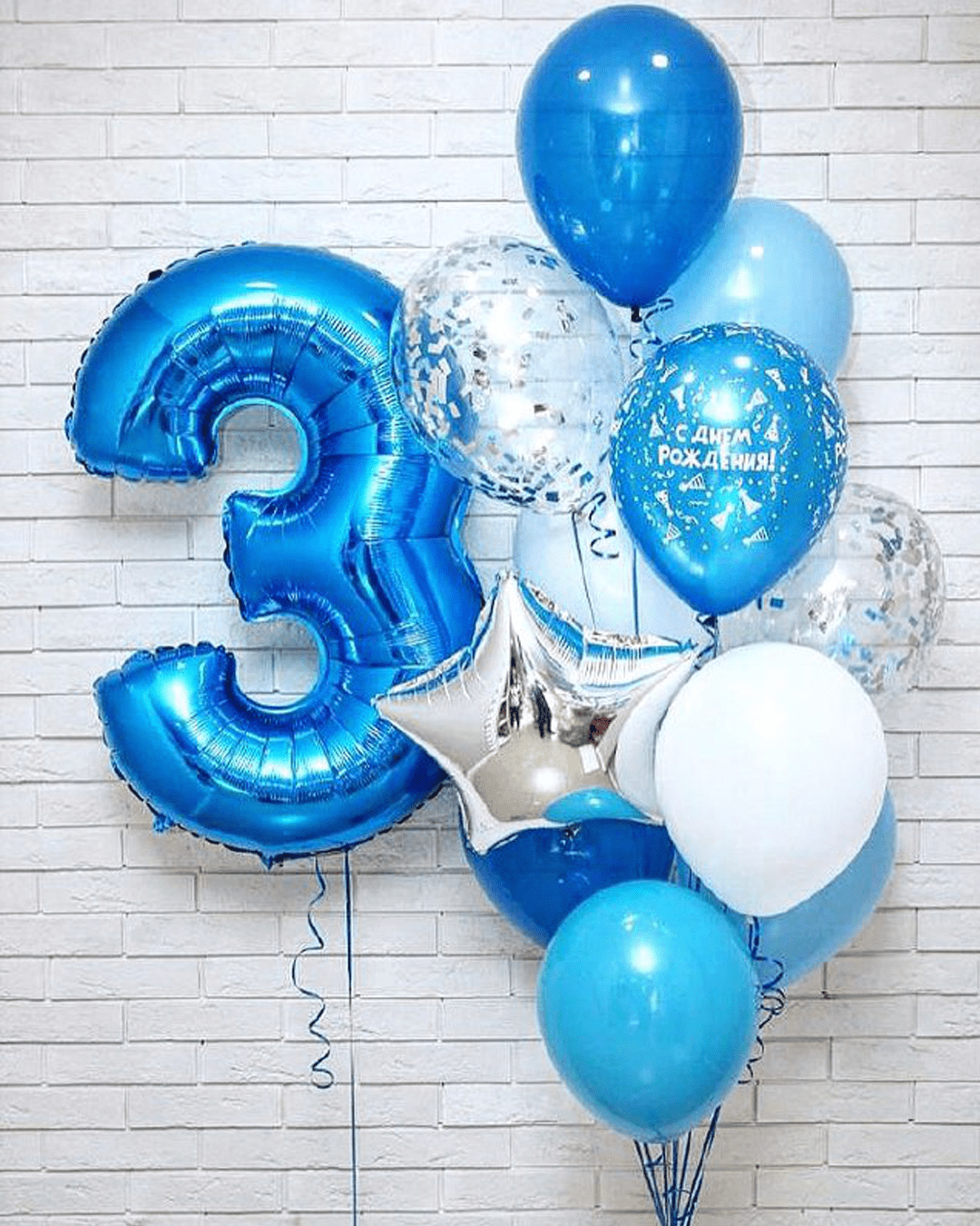 2)фольгированная цифра 3 синяя