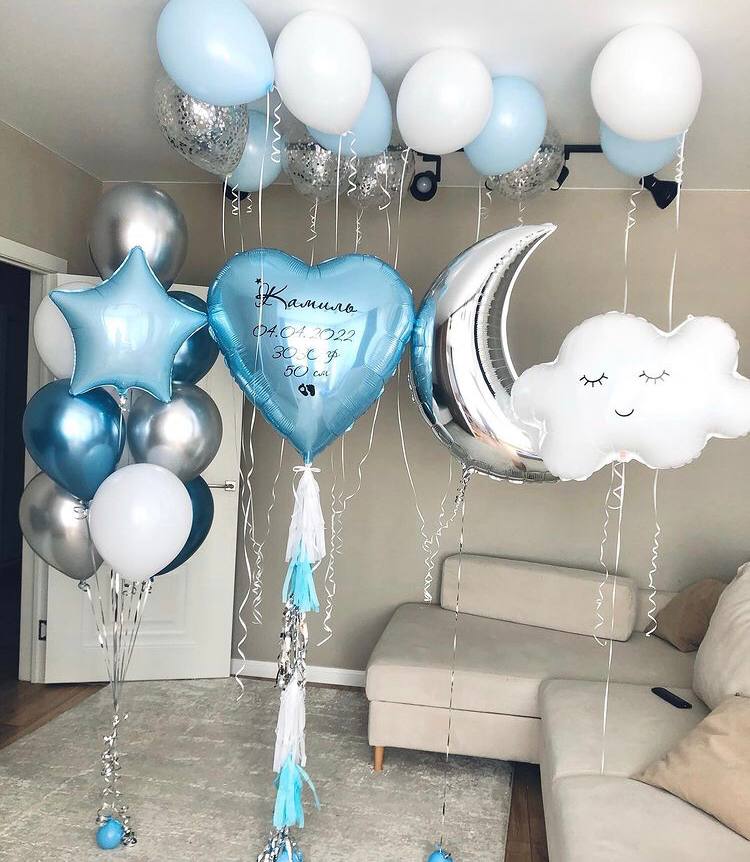 Композиция из шаров на выписку мальчику. Ура мальчик