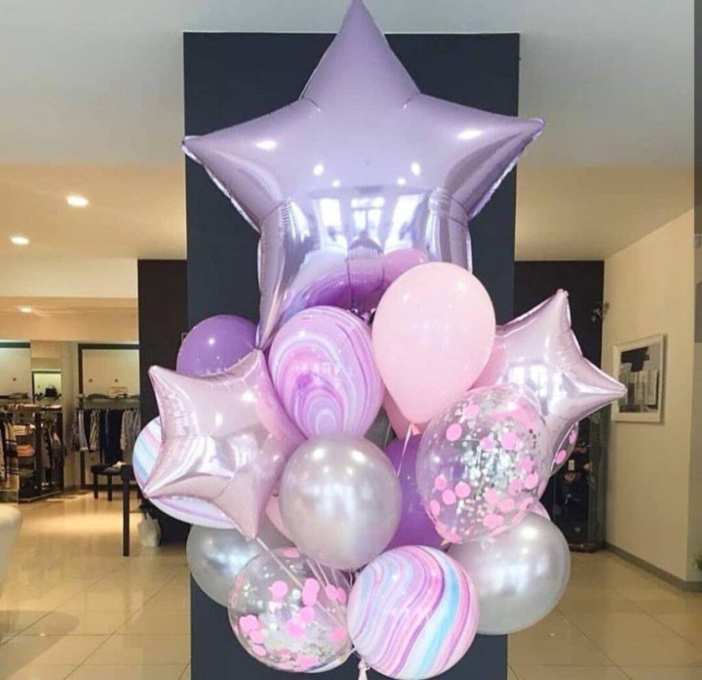 Композиция из шаров “Супер-звезда” в сиреневом цвете