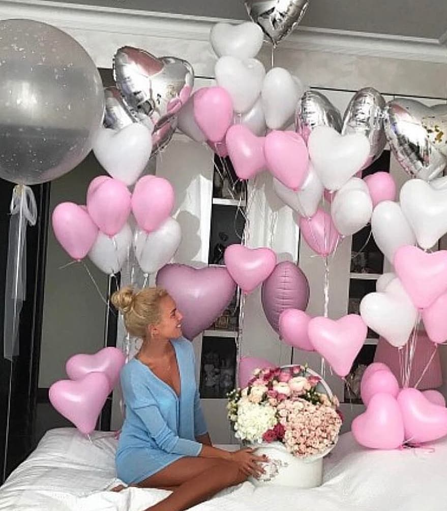 1 шар 60см Серый. 3 Фонтана по 9 шаров. 15 шаров сердца розовые