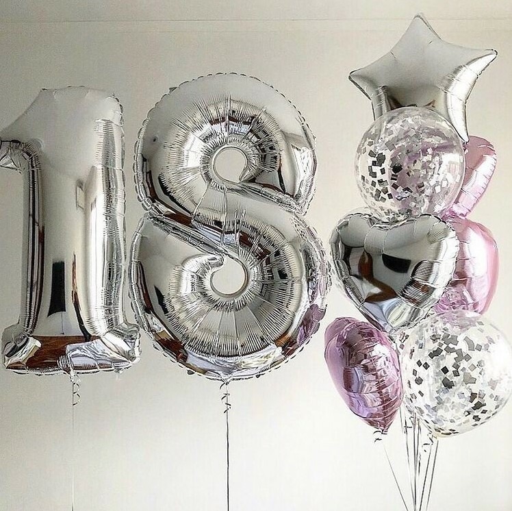 Композиция из шаров в серебряном цвете с цифрами 18