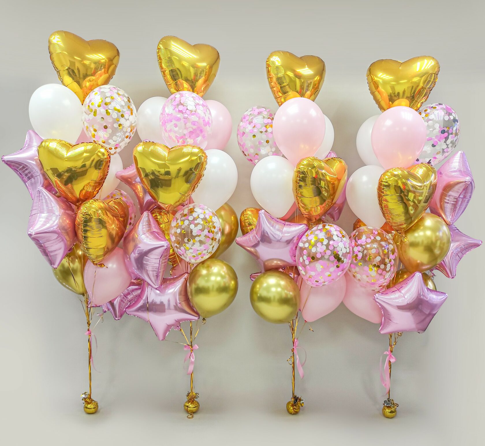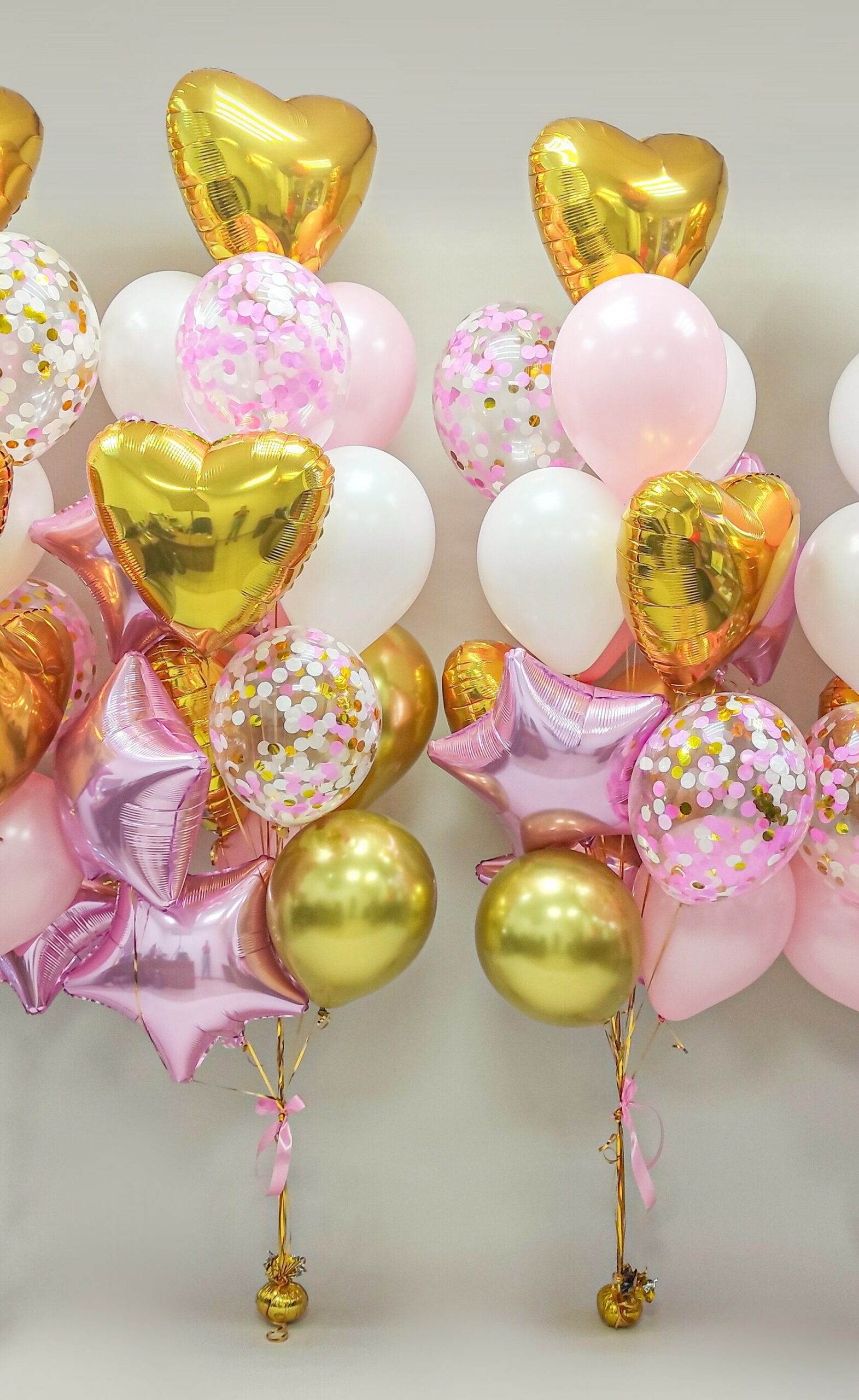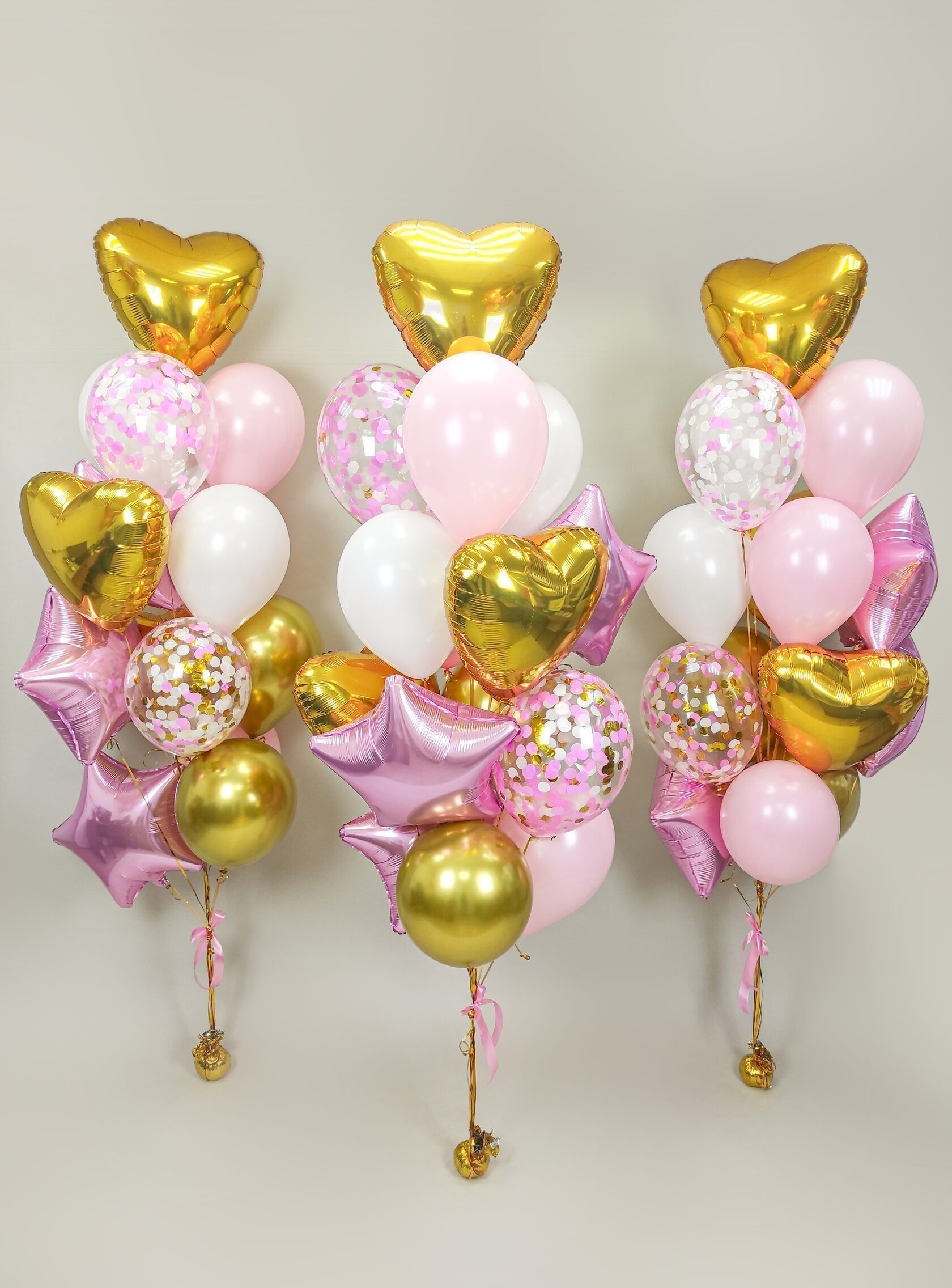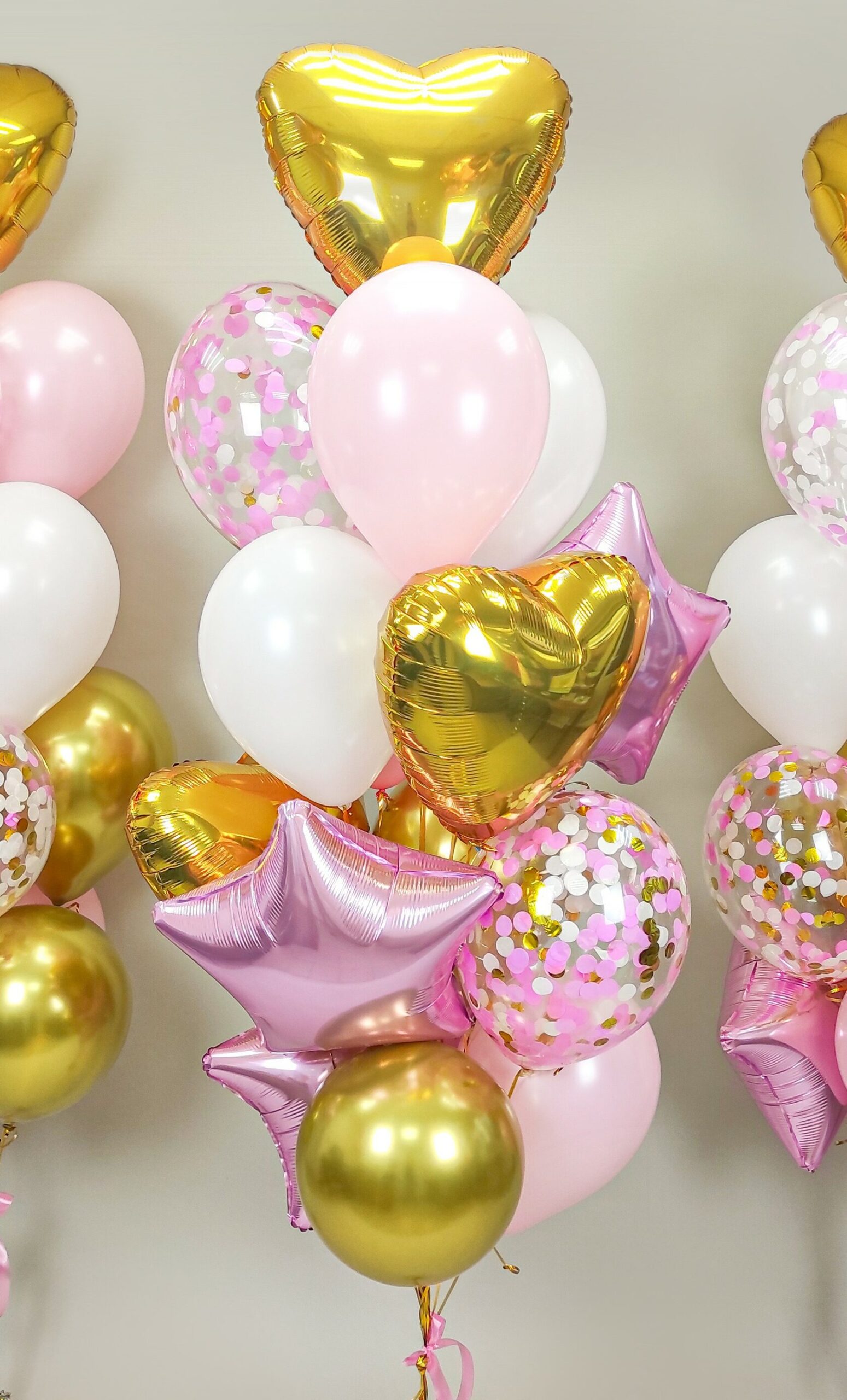 шар с конфетти (розовый, золото, белый круг) – 2шт