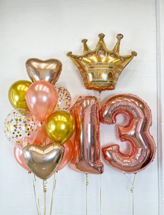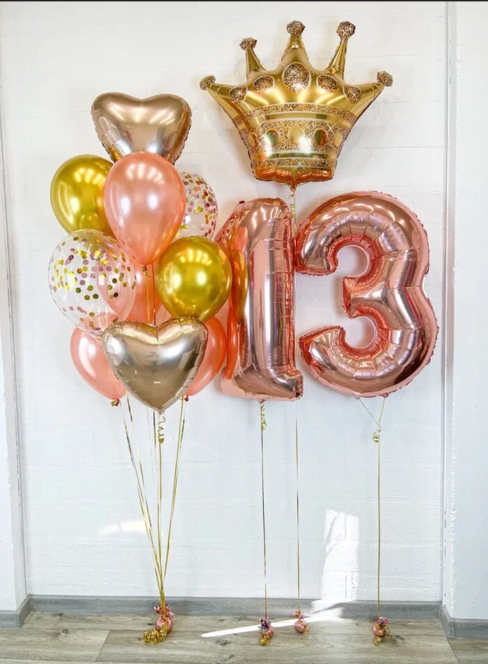 Композиция на 13 лет девочке в цветах розовое золото с короной