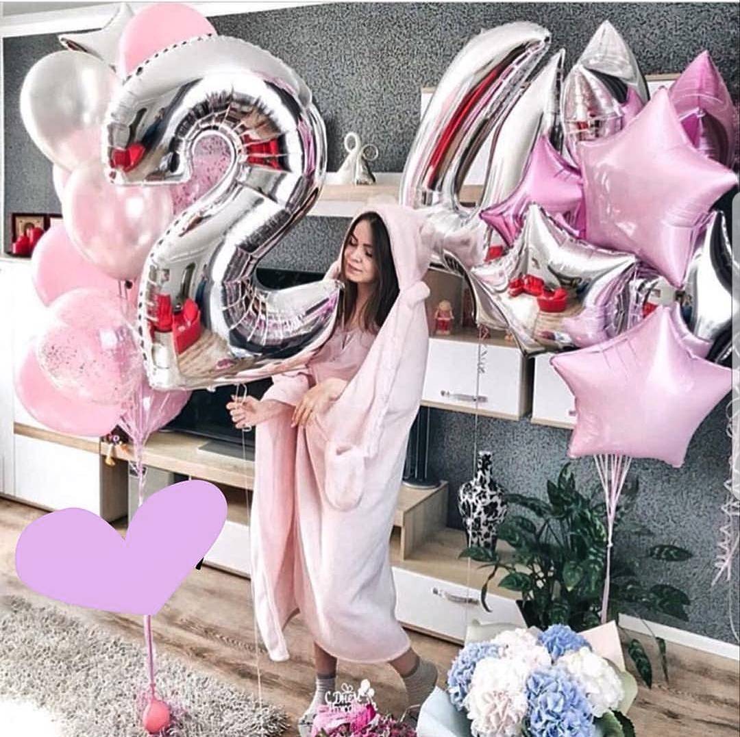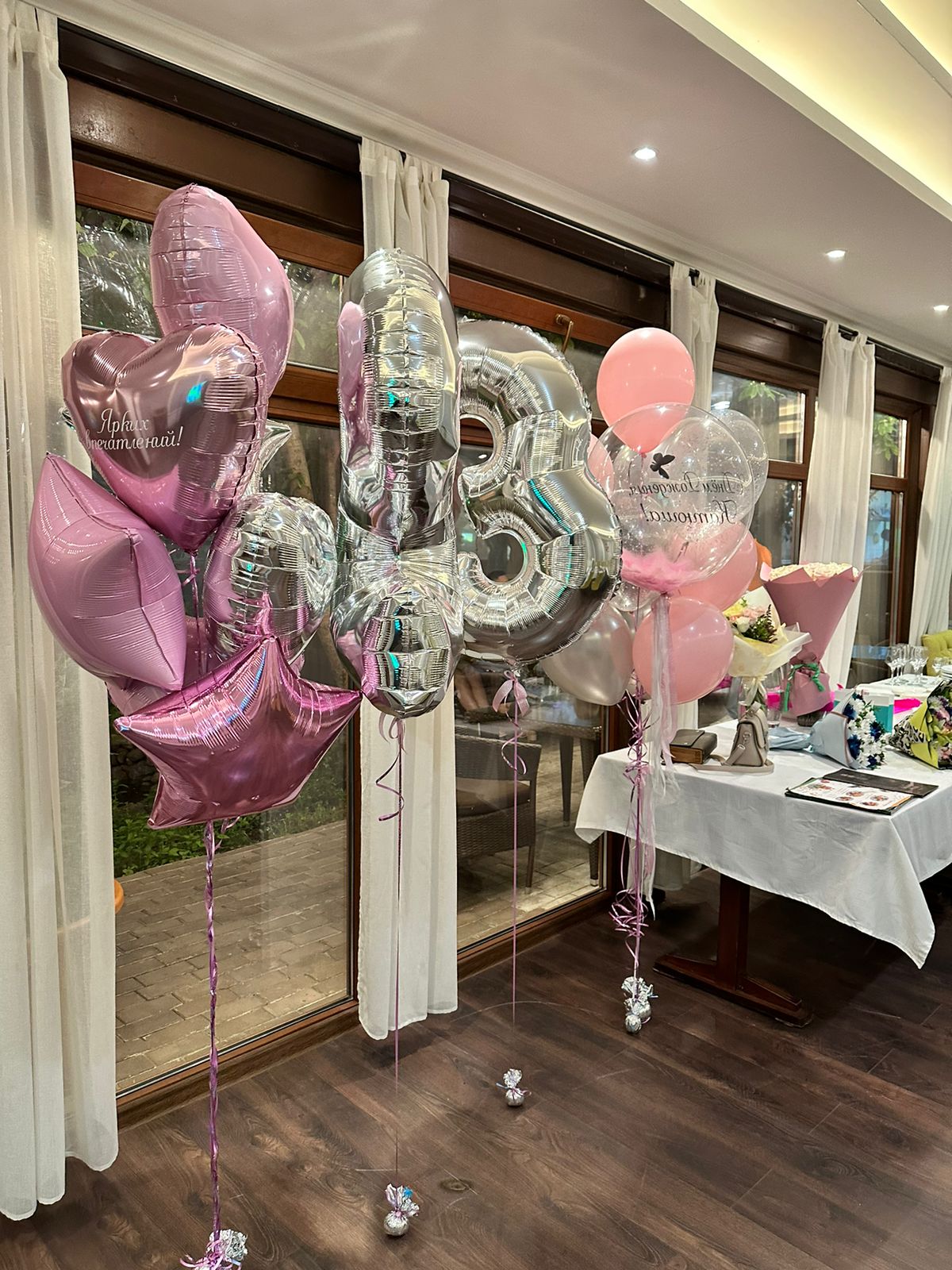 Композиция на день рождения из 2 букетов и цифр из фольги