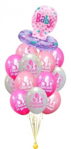 Композиция на выписку девочке с фольгированной соской