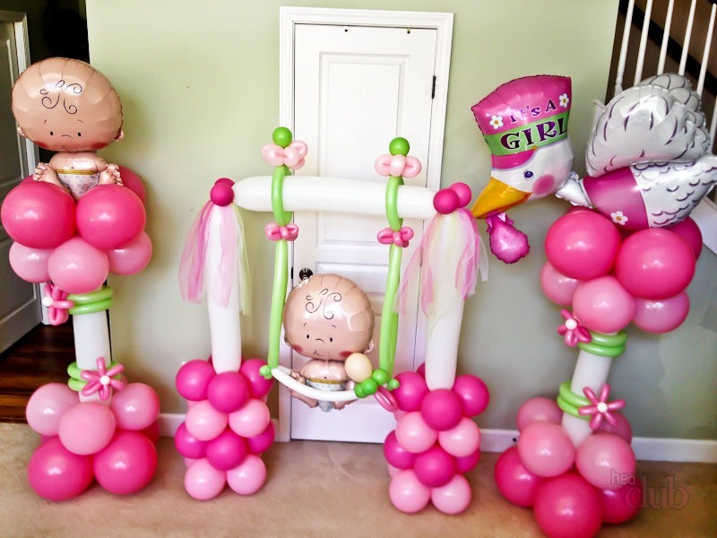 Композиция на выписку в ягодно-розовом цвете с фольгированными фигурами