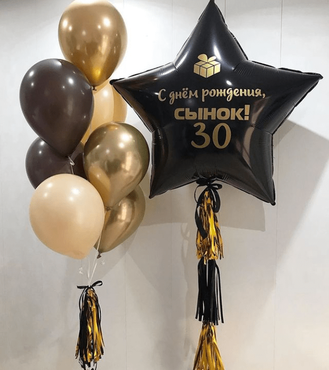 Фольгированная звезда черная 81 см с надписью и тасслом