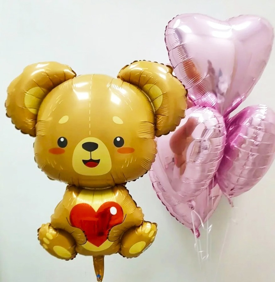-фольгированное сердце розовое металлик 46 см – 5 шт.