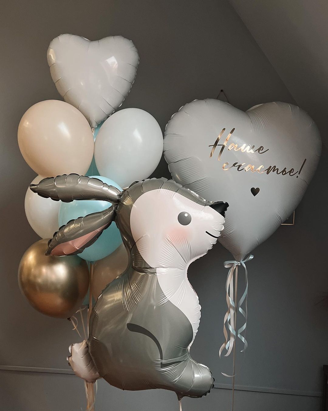 Композиция шаров на выписку мальчика “Наше счастье”