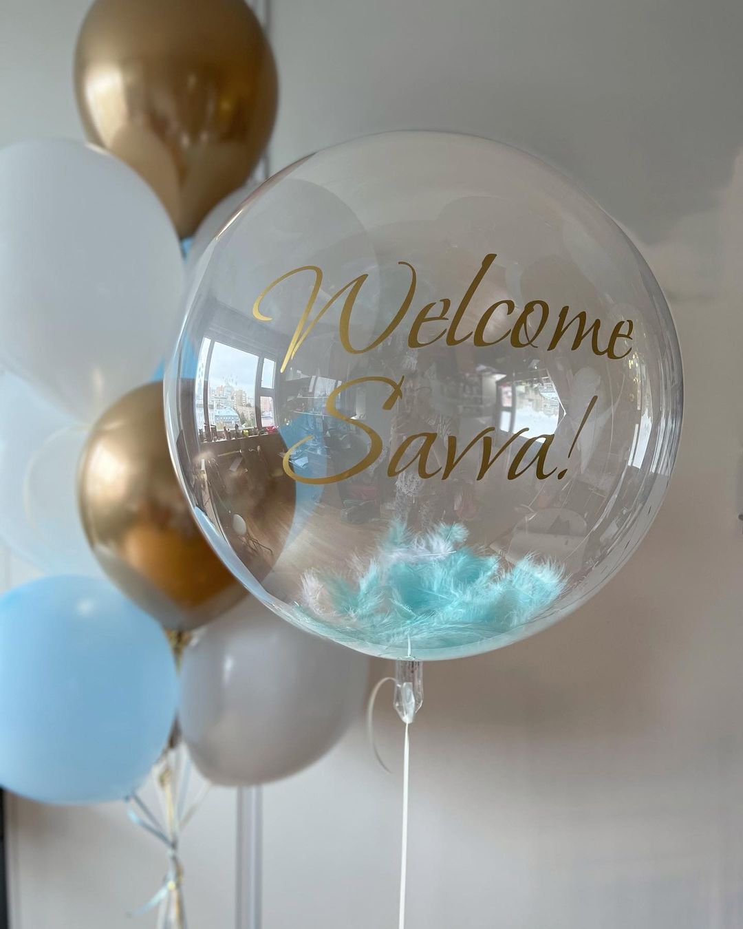 Шар баблс с перьями + Ваша надпись – 1 шт