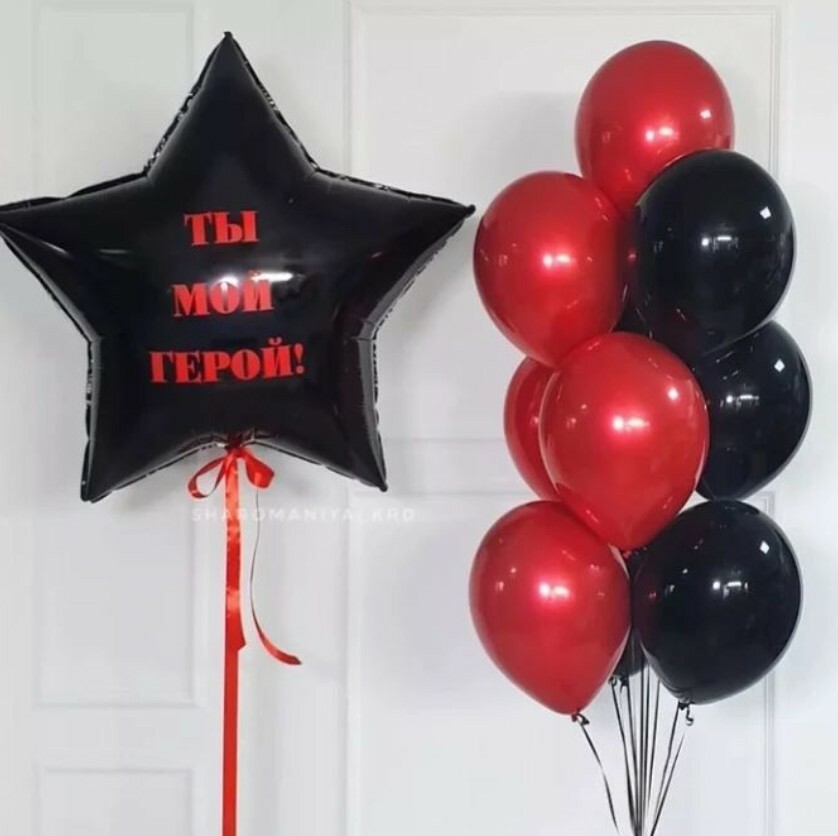 фольгированная звезда чёрная 80 см + ваша надпись.;