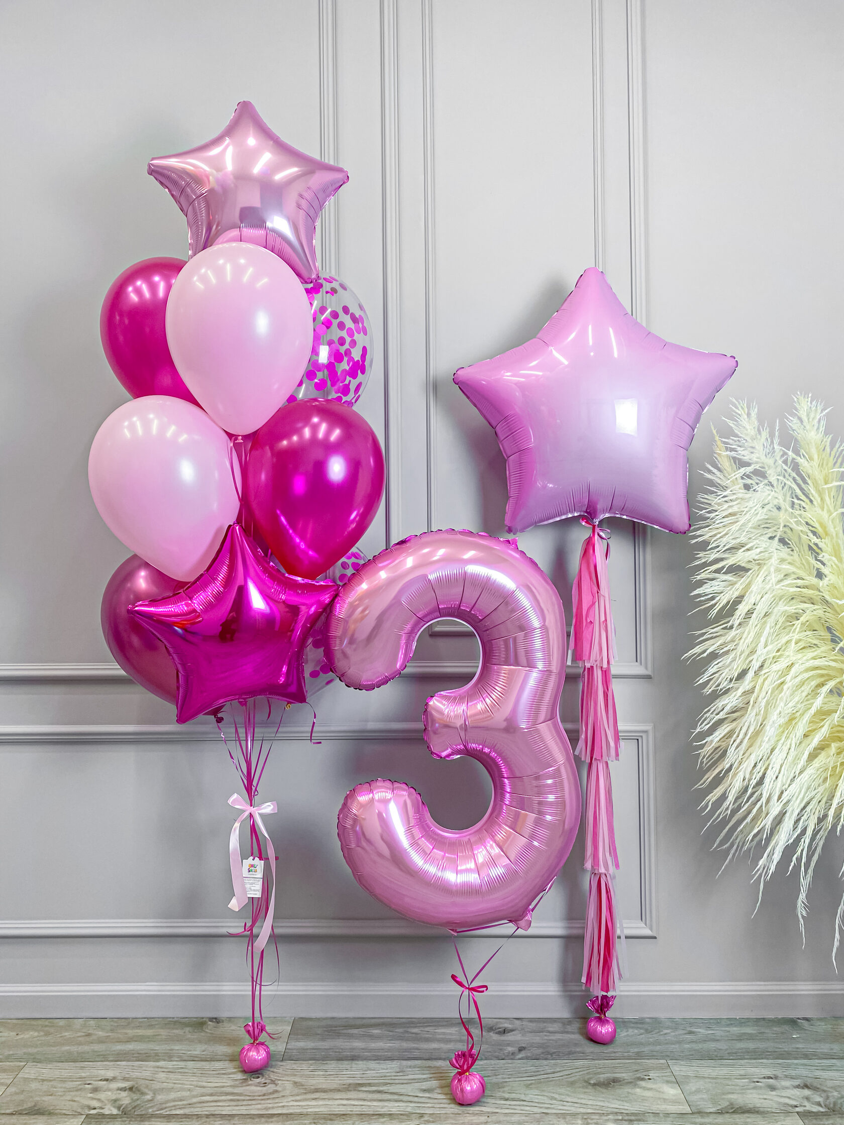 Фольгированная цифра 3 розовая.