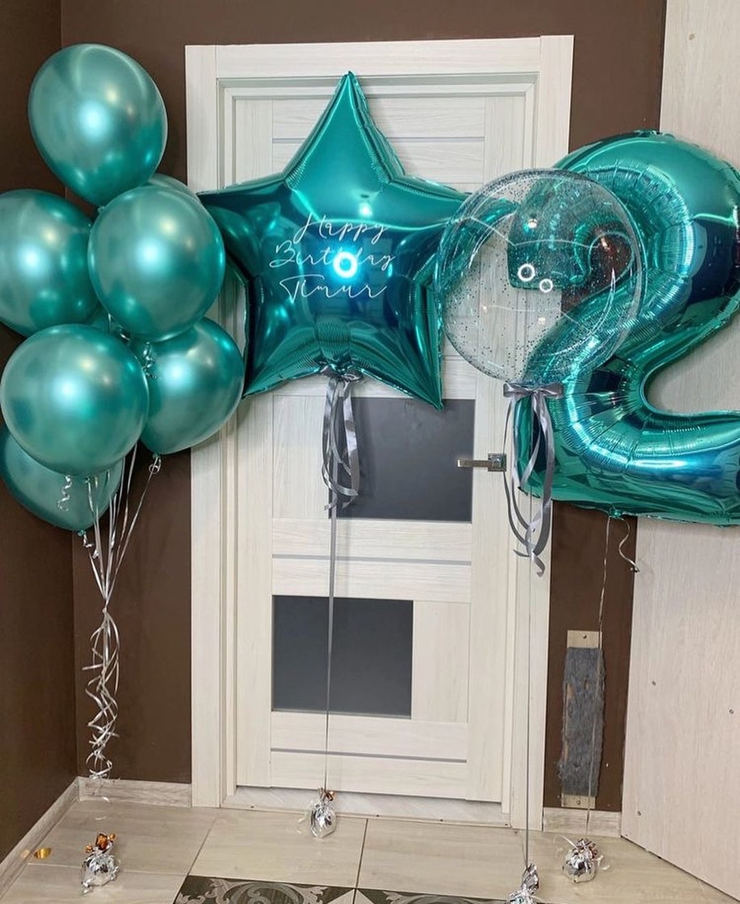Фольгированная цифра 2 тиффани на грузике.