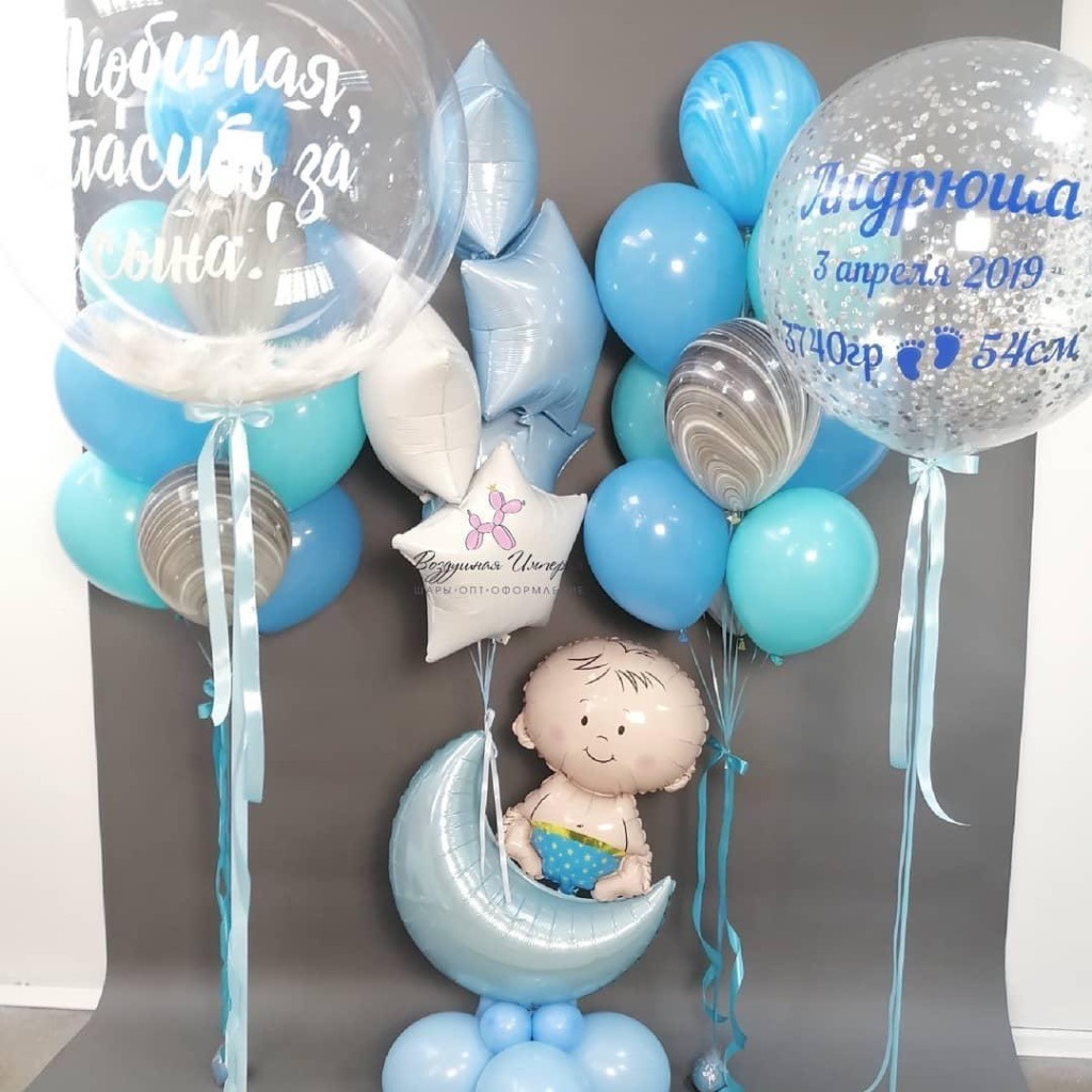 Шар баблс с перьями и индивидуальной надписью 2 шт