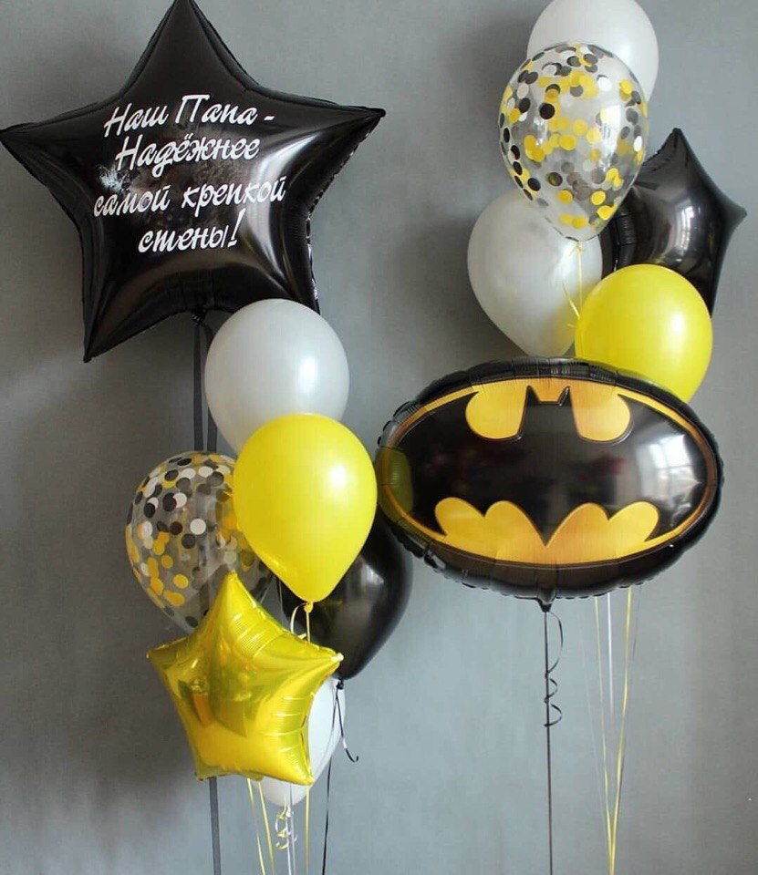Композиция в стиле Бэтмен “Папочке” из гелиевых гелиевых шаров