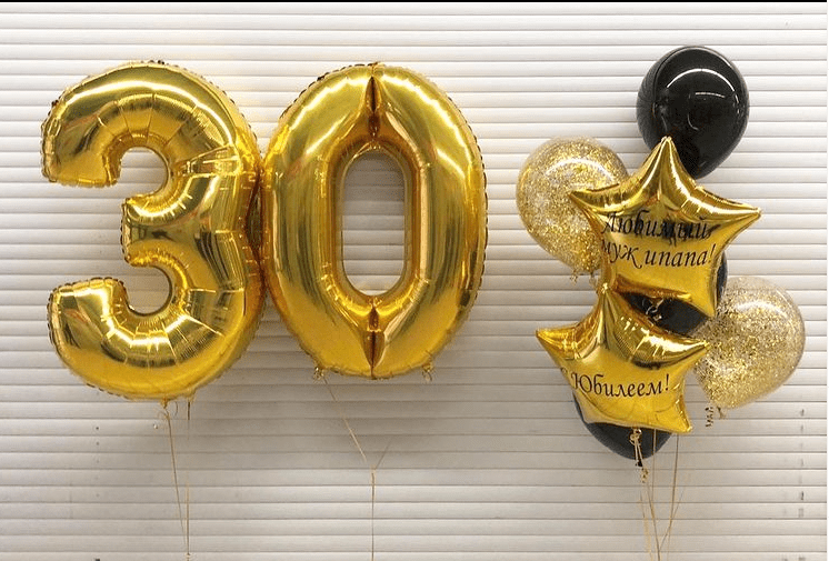 -фольгированные звезды золото 46см с надписью – 2 шт