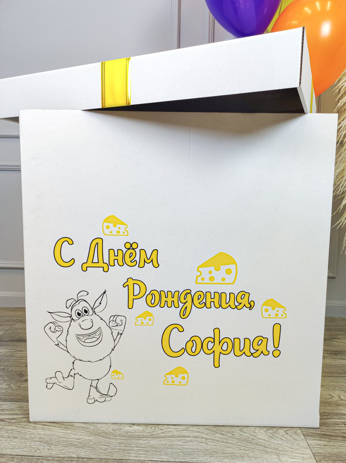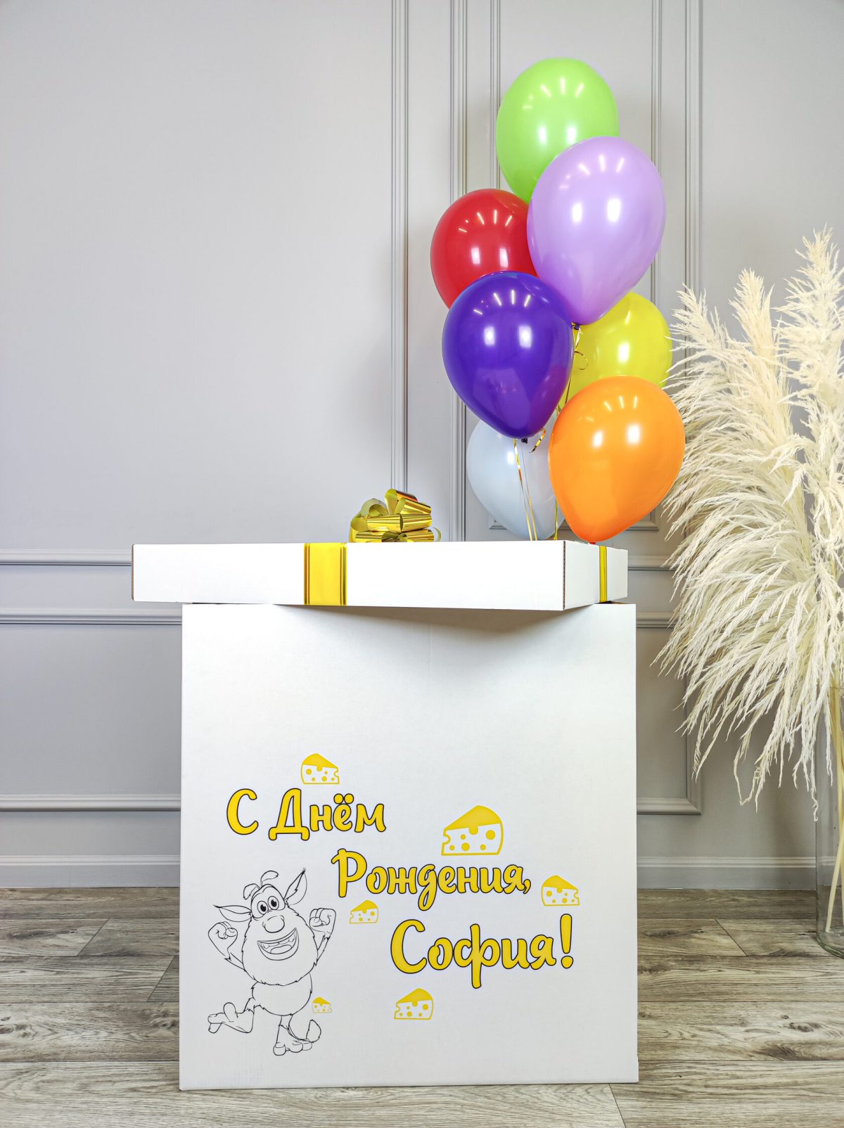 Коробка с шарами для девочки в стиле “Домовёнок Буба”