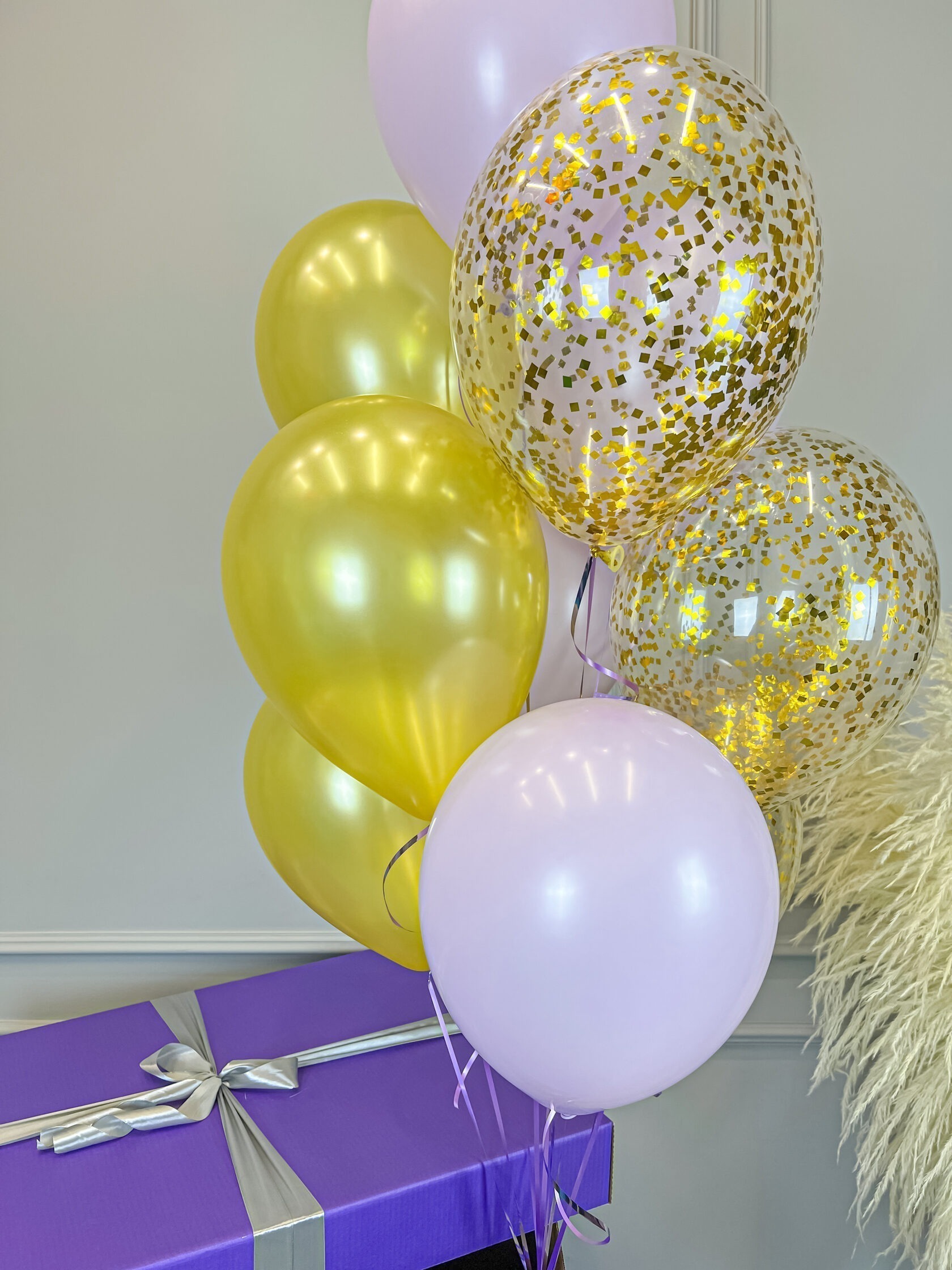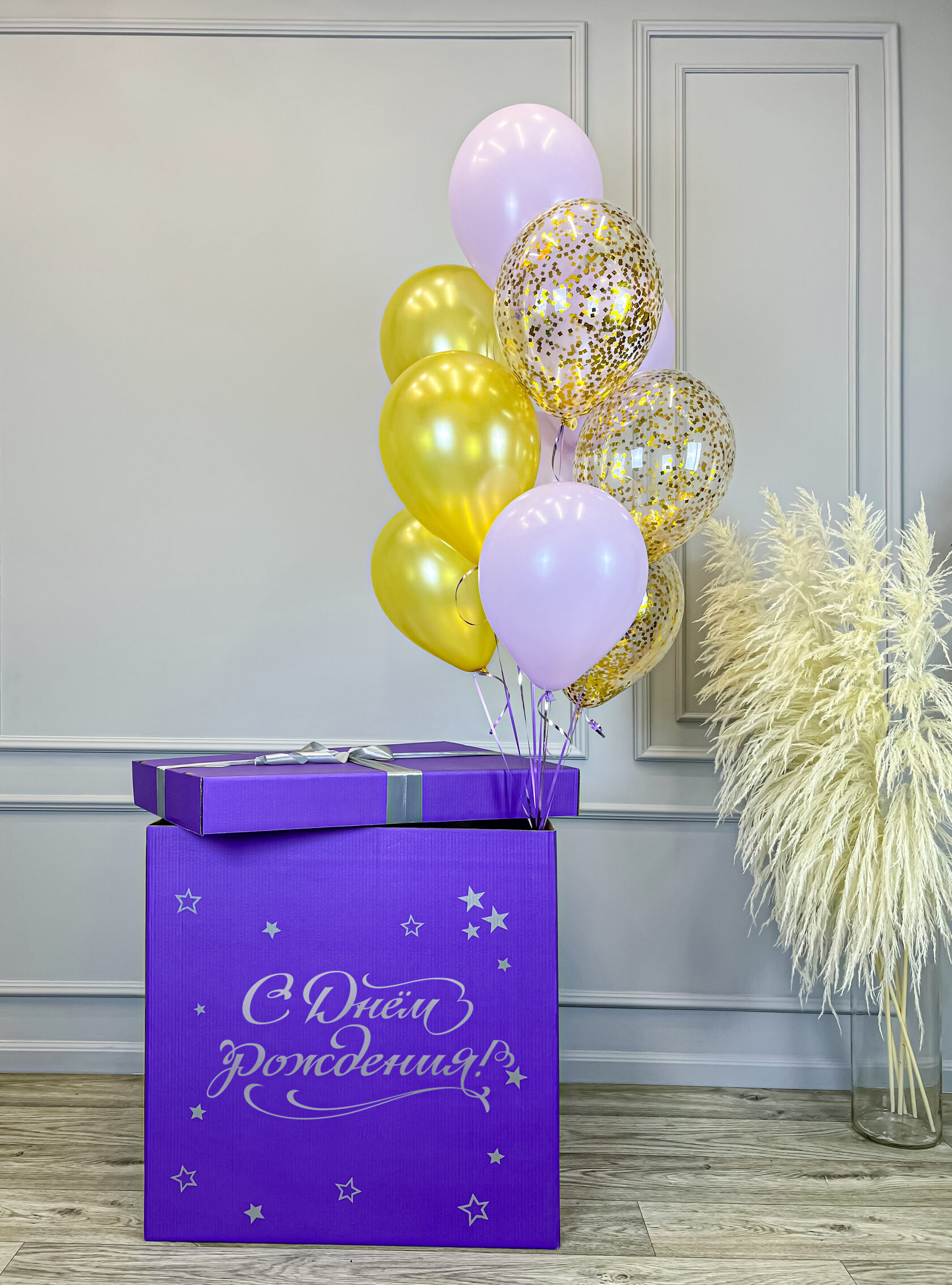 – Коробка фиолетовая 70см с индивидуальной надписью и бантом