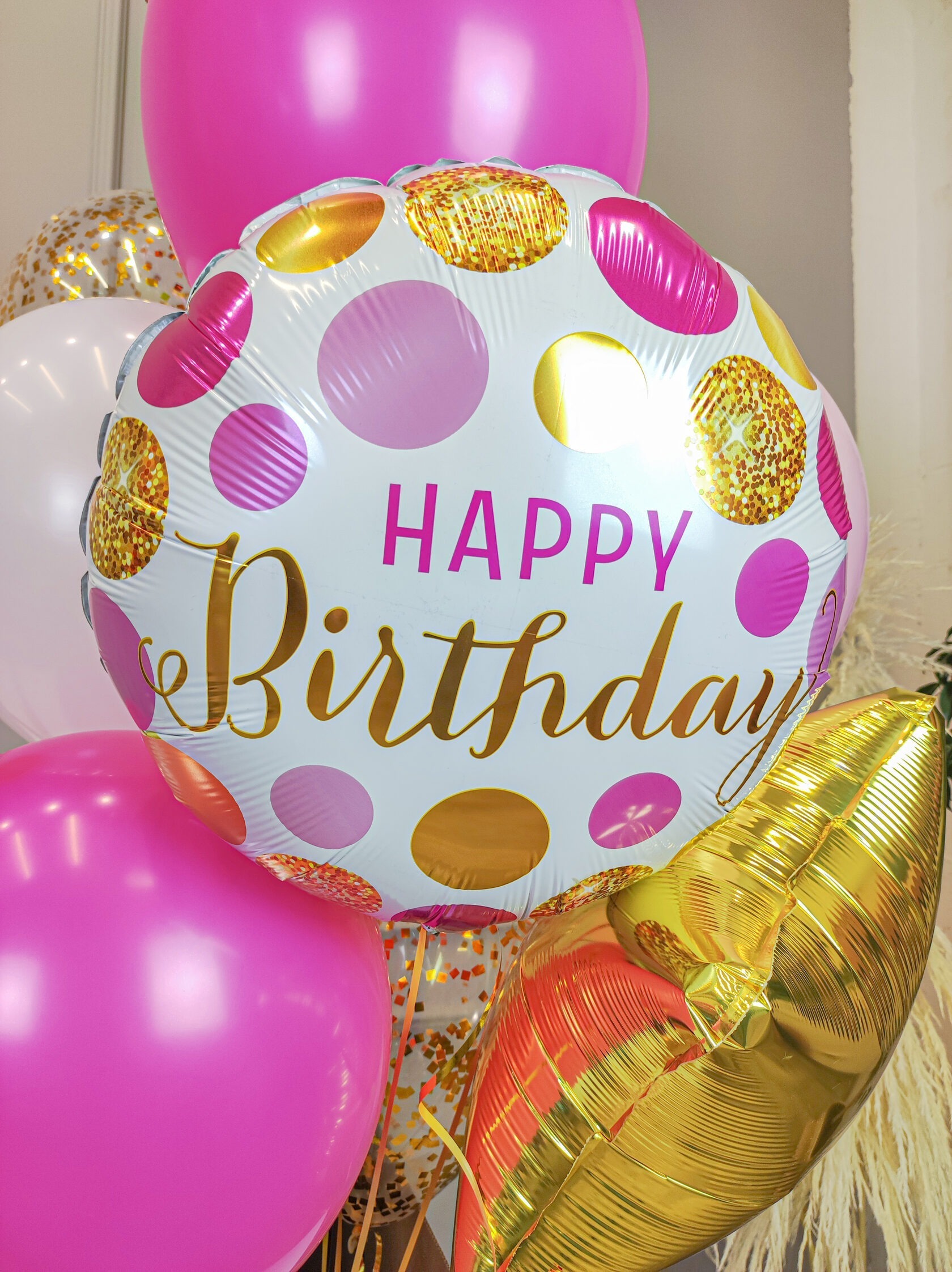 – 5 латексных шаров (нежно-розовый, фуксия, белый);