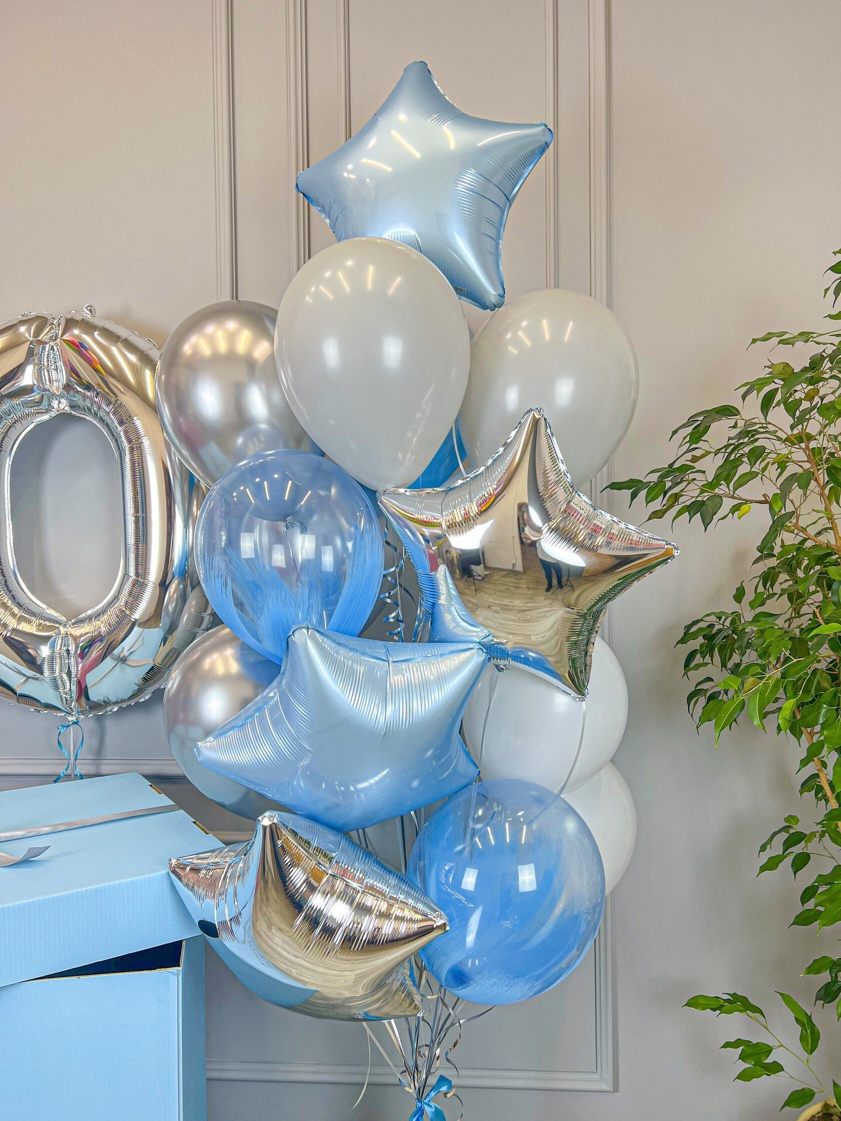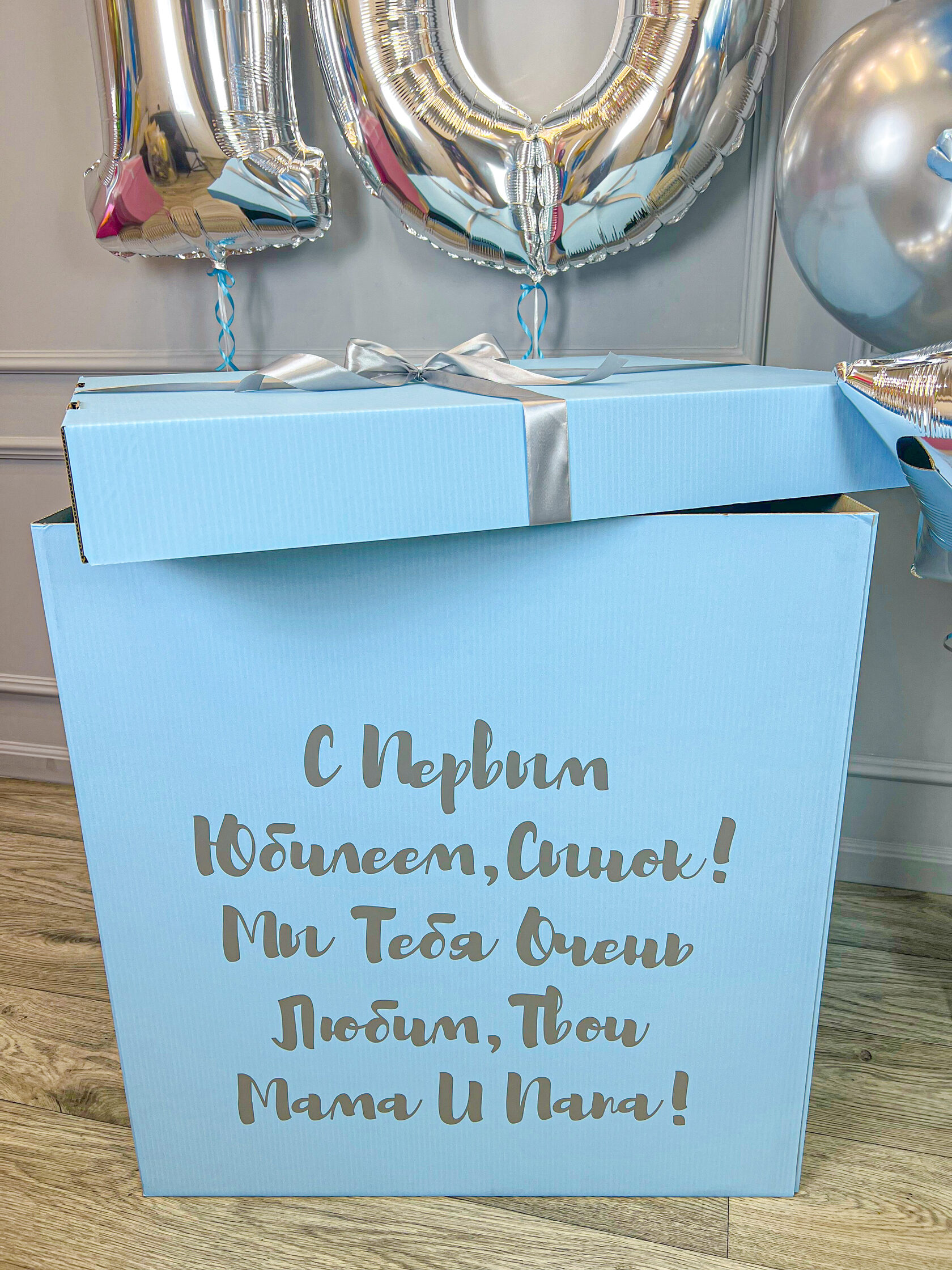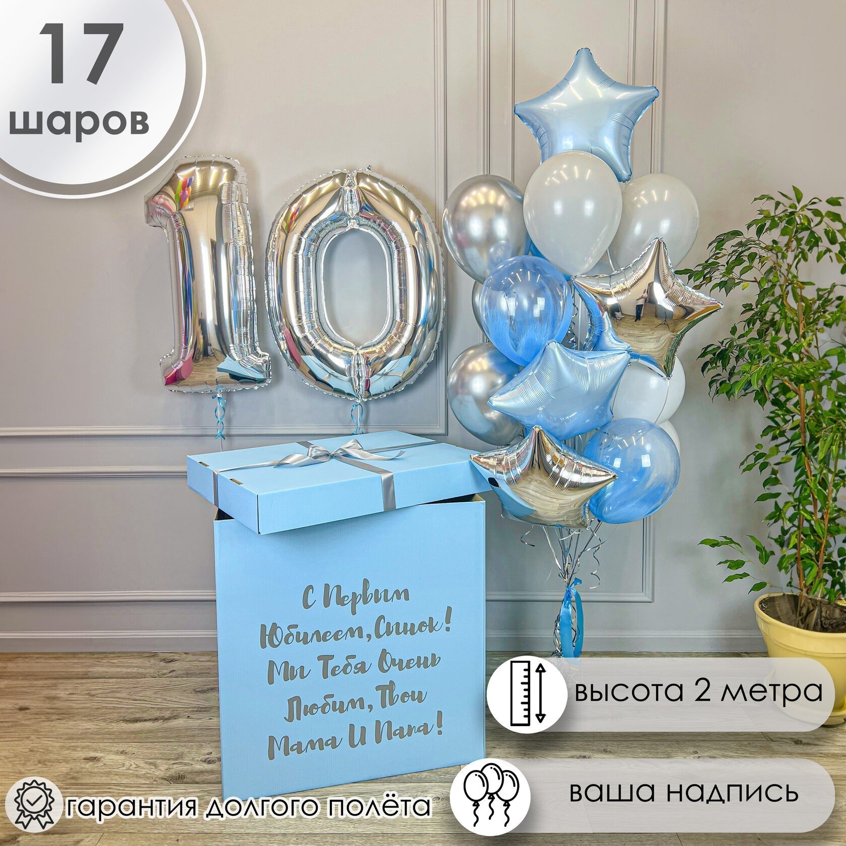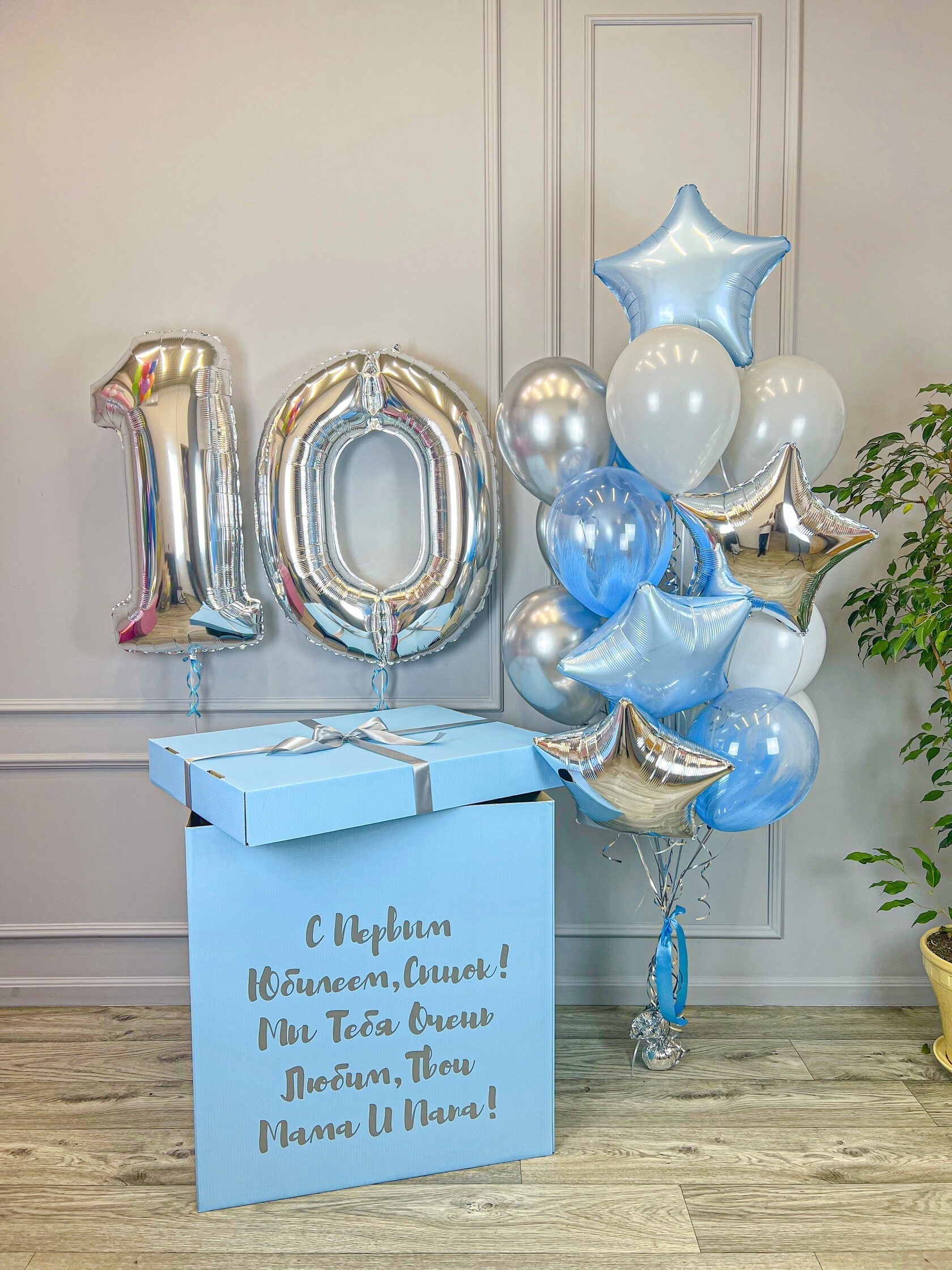 Коробка-сюрприз для мальчика на 10 лет в голубом и серебряном цвете