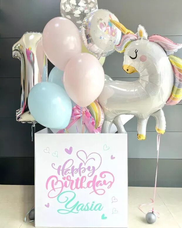 Коробка-Сюрприз макарунс с единорогом и цифрой