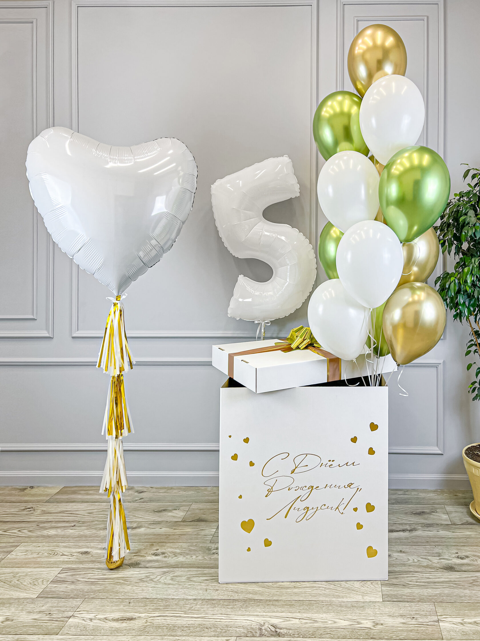 Коробка-сюрприз на 5 лет девочке с белой цифрой