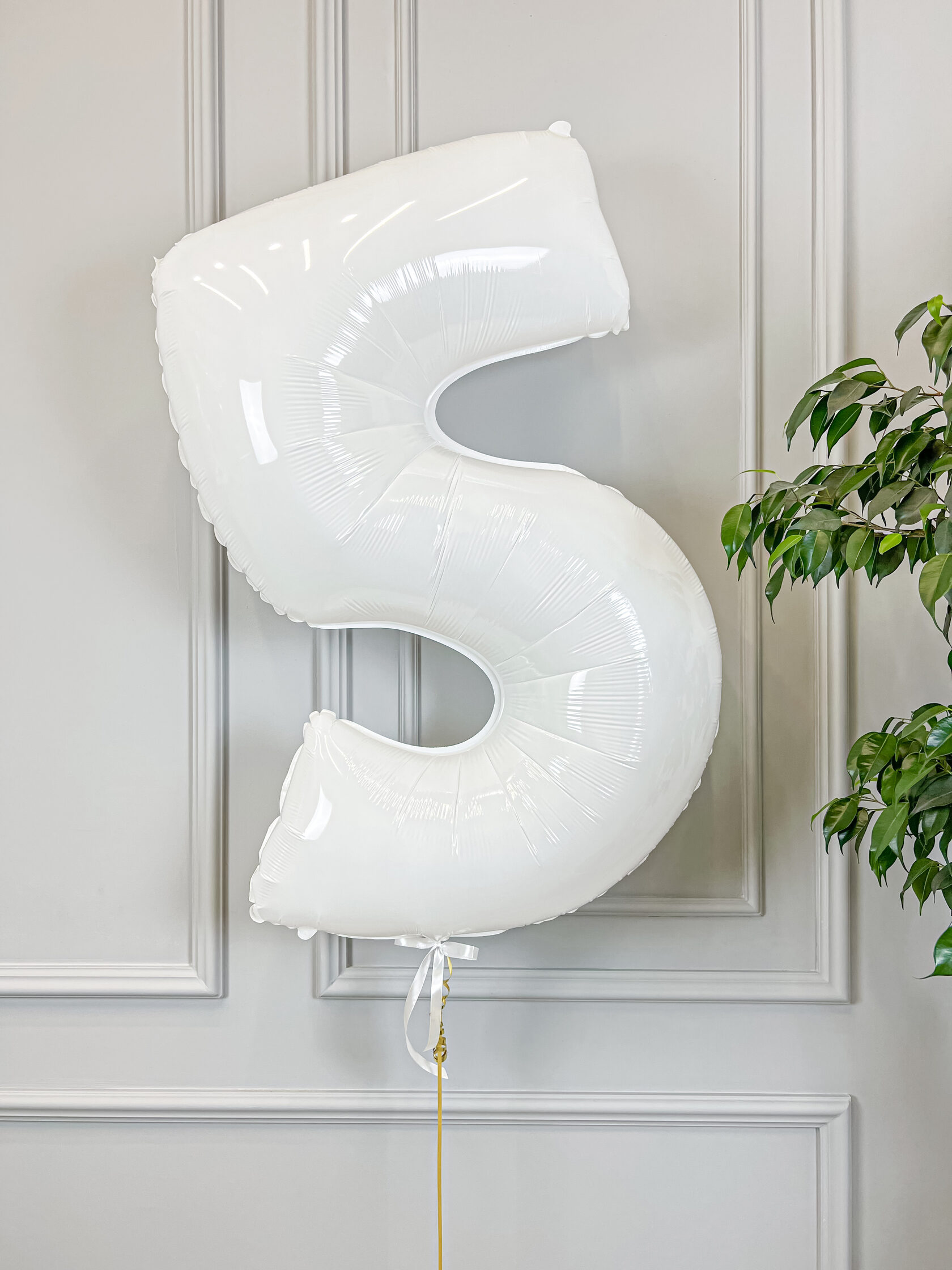 Фольгированная цифра 5 белая на грузике.