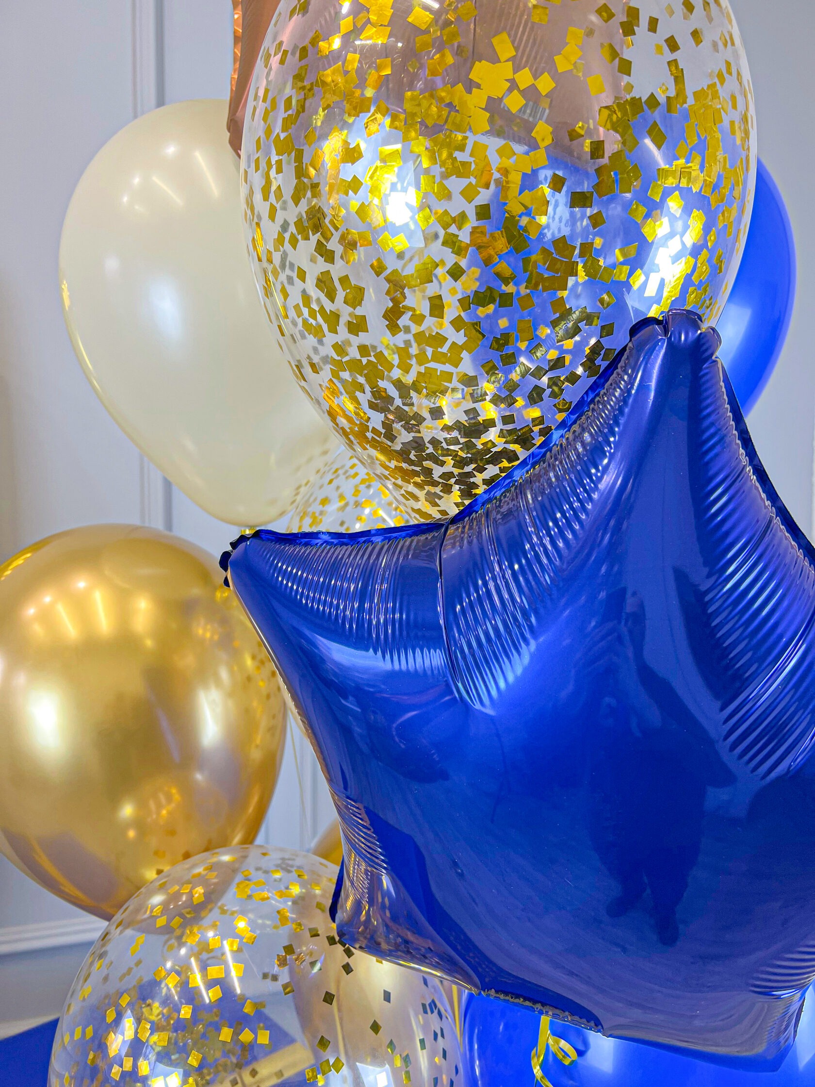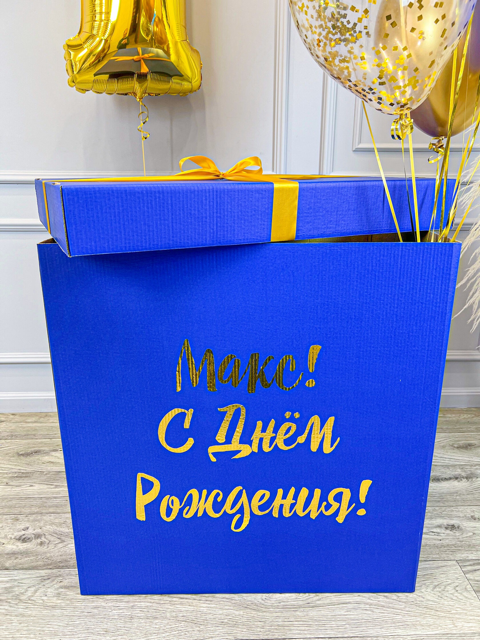 Коробка-сюрприз на годик для мальчика в синем и золото цвете