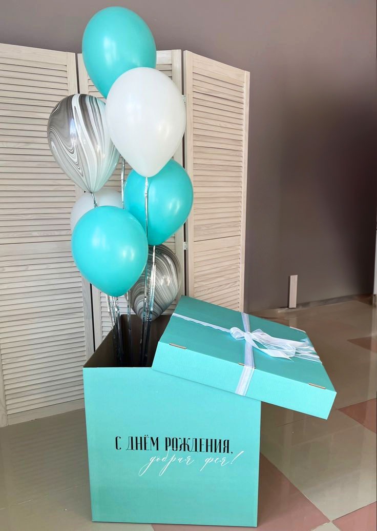 Коробка-сюрприз с шарами в бирюзовом цвете для мужчины