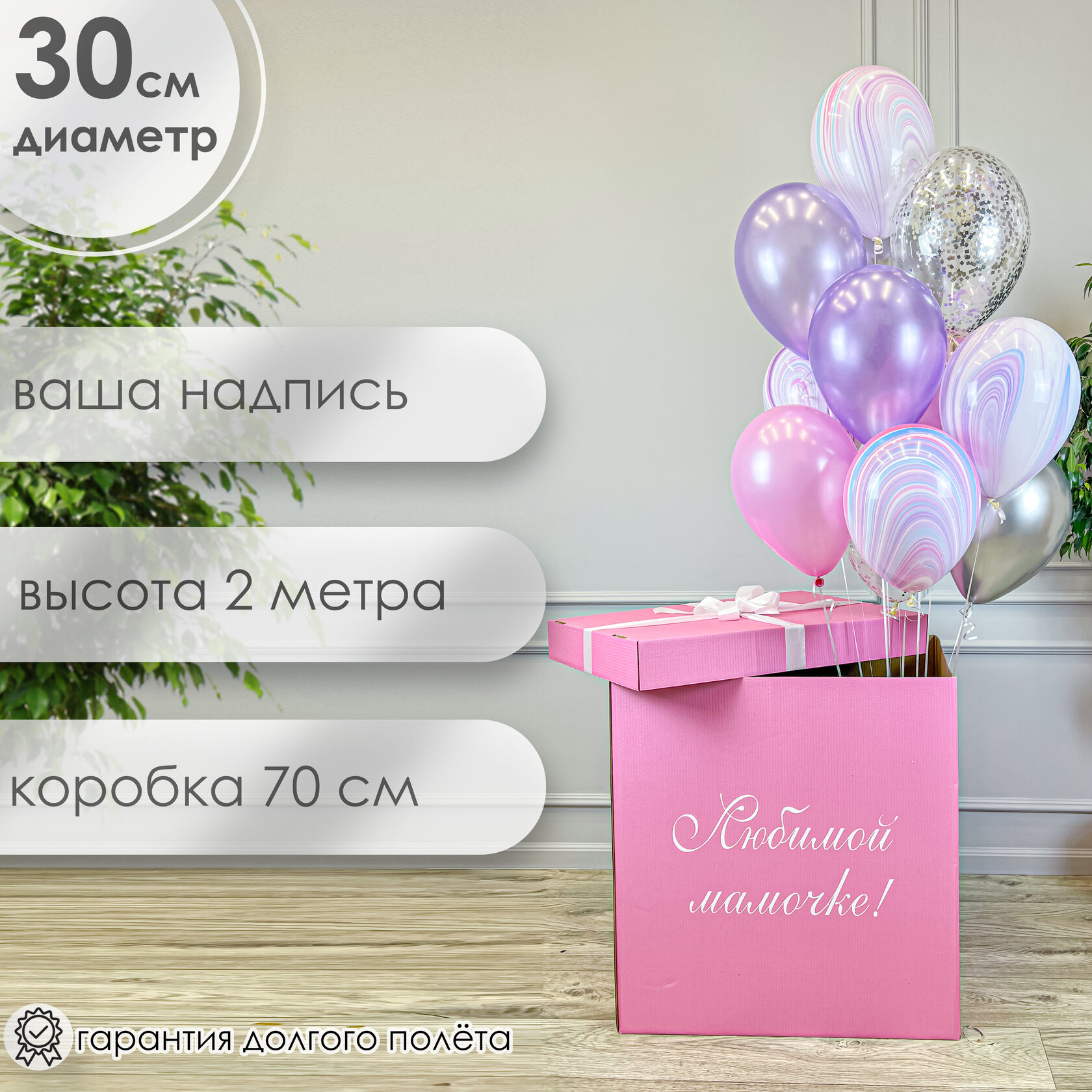 коробка 70х70х70см + ваша надпись.