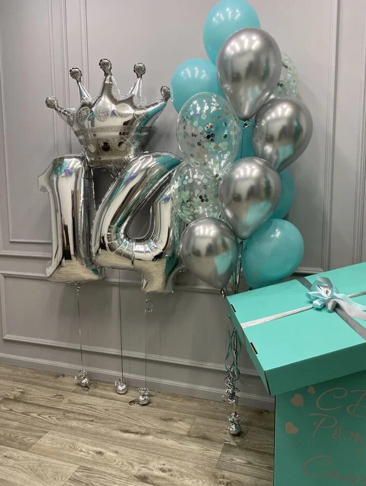 Фольгированные цифры 14 серебро на грузике.