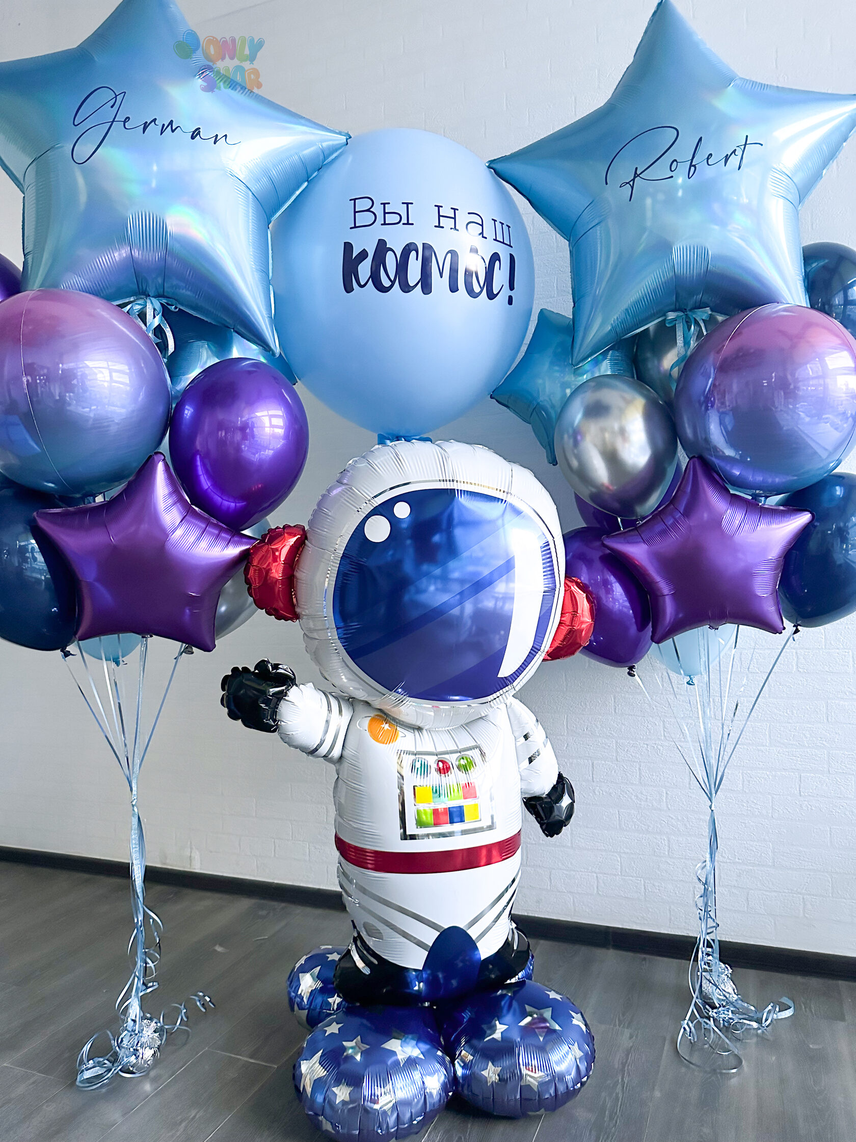 – 1 фольгированная звезда голубая 80см с индивидуальной надписью