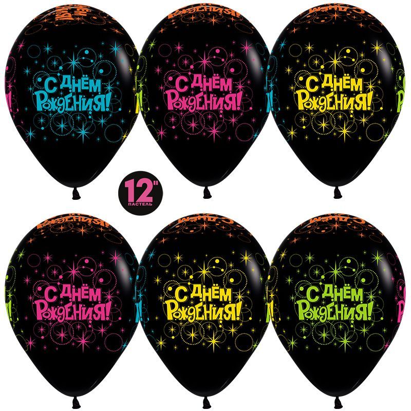 Латексные чёрные шары с цветной надписью “С днём рождения”