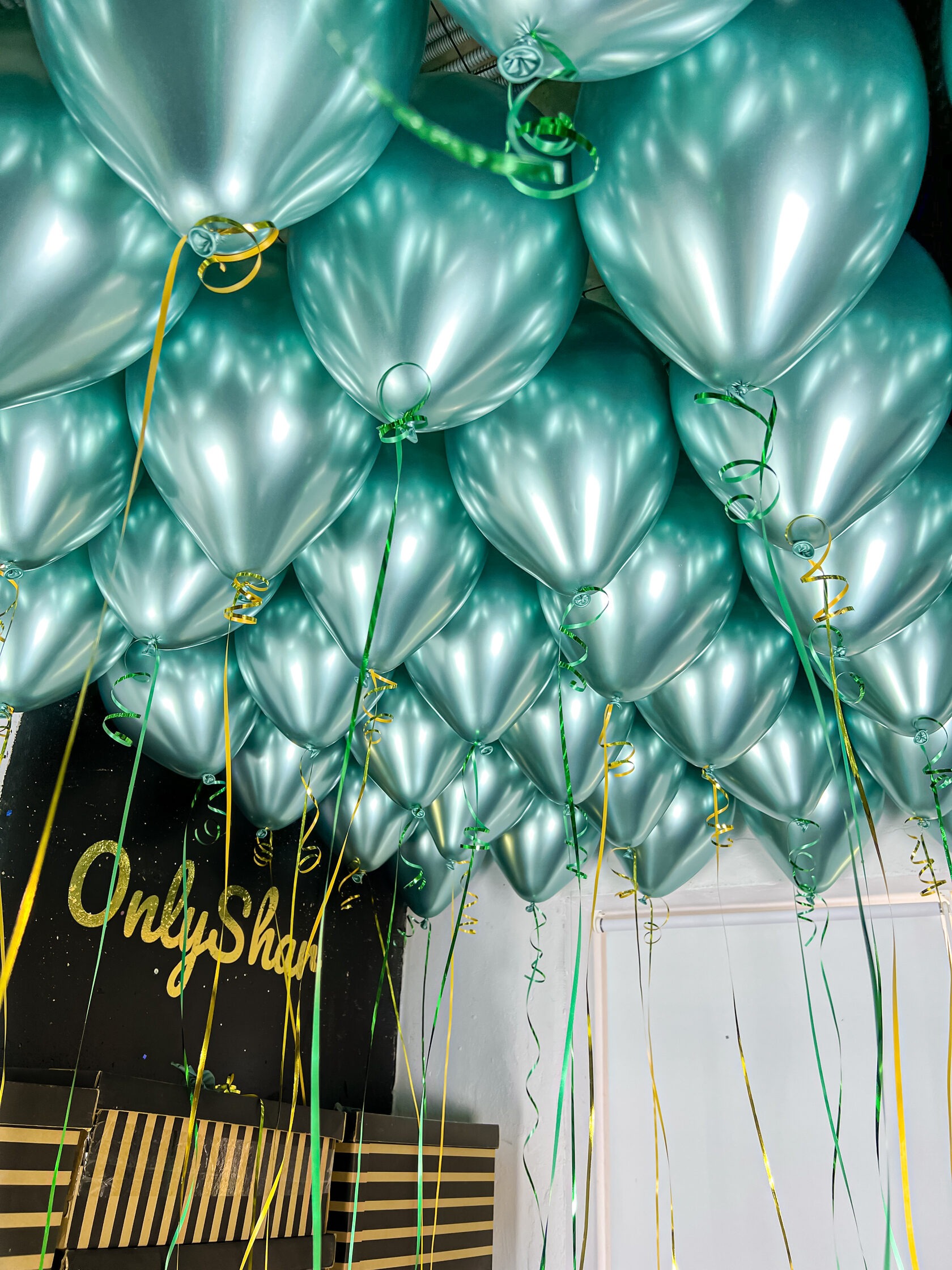 Разноцветные шары под потолок с надписью “С Днем Рождения”