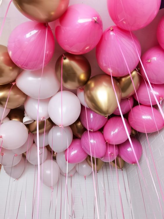 Латексные шары под потолок 30 штук: в золотом и розовом цвете