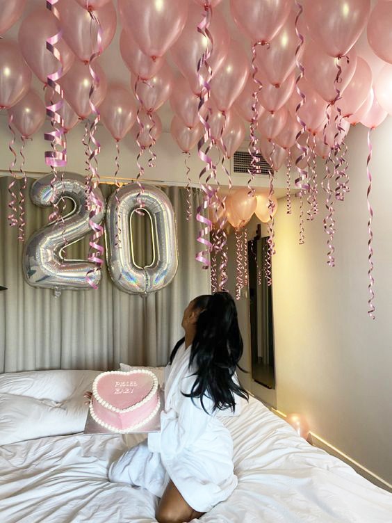 Разноцветные шары под потолок с надписью “С Днем Рождения”