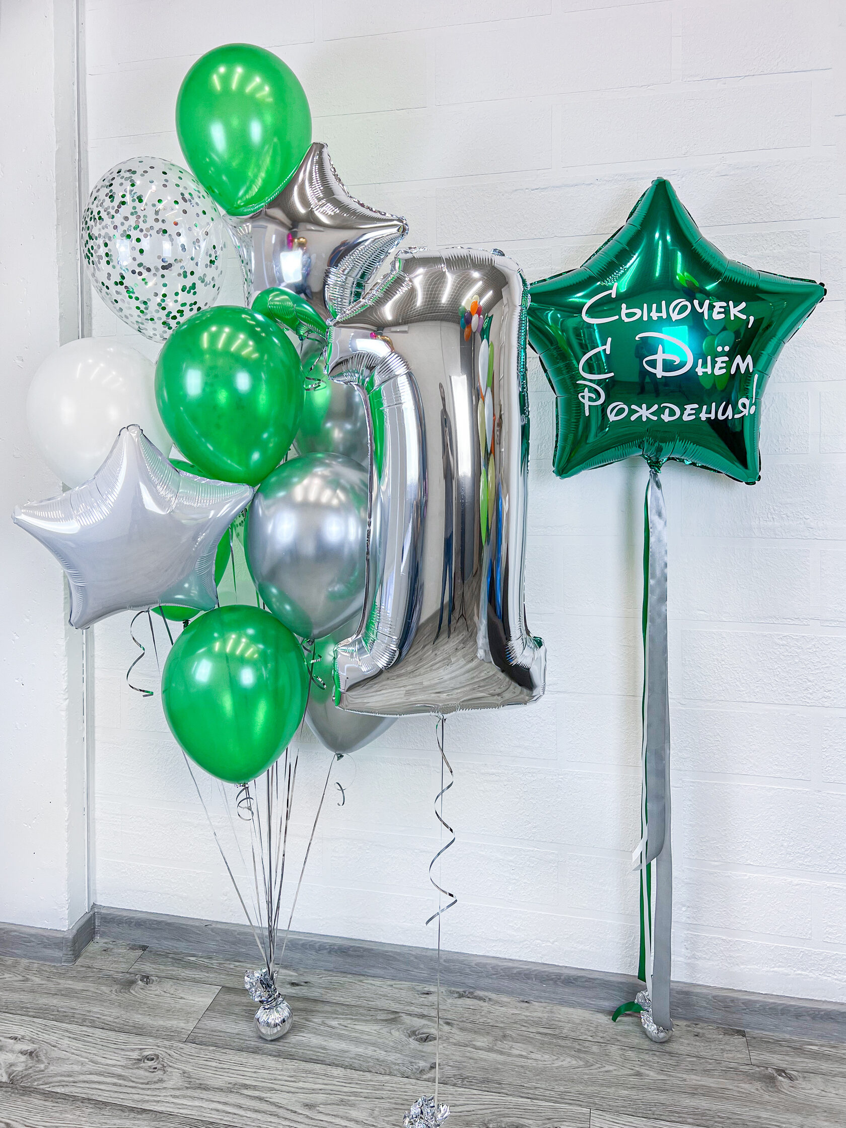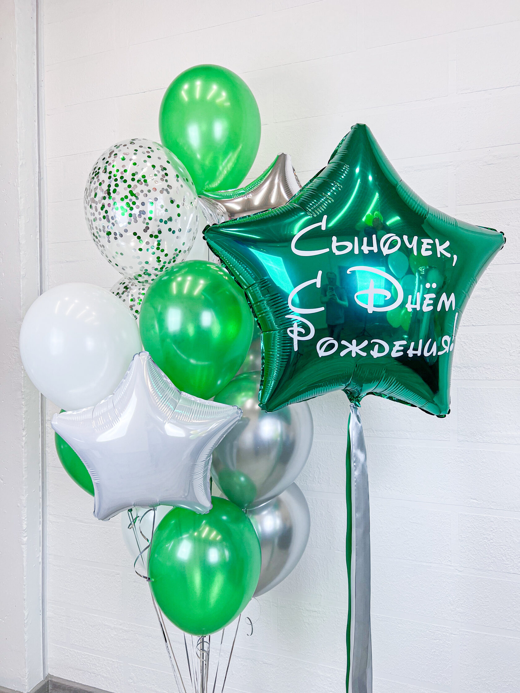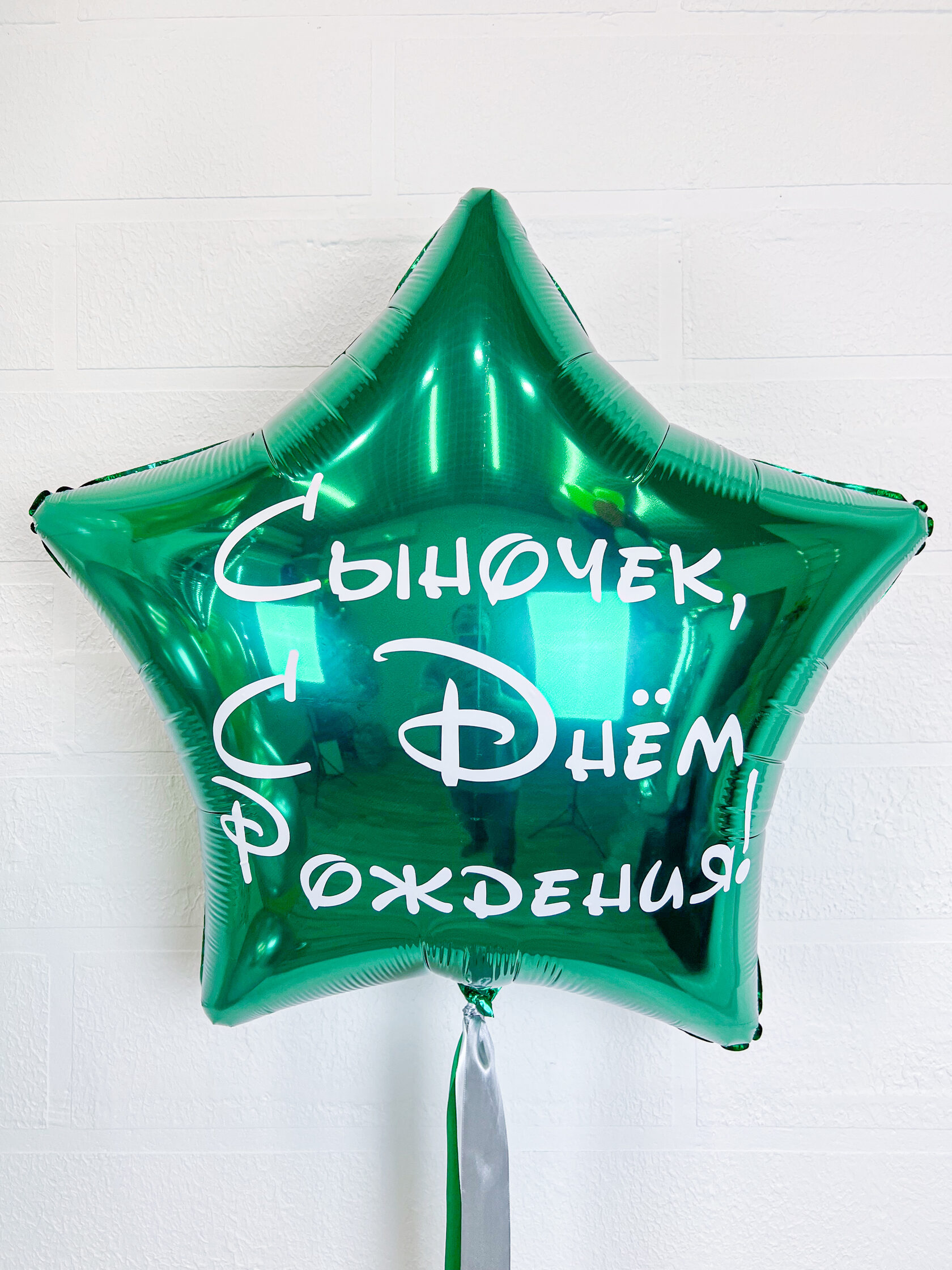 Фольгированная звезда 80 см зелёная + ваша надпись.