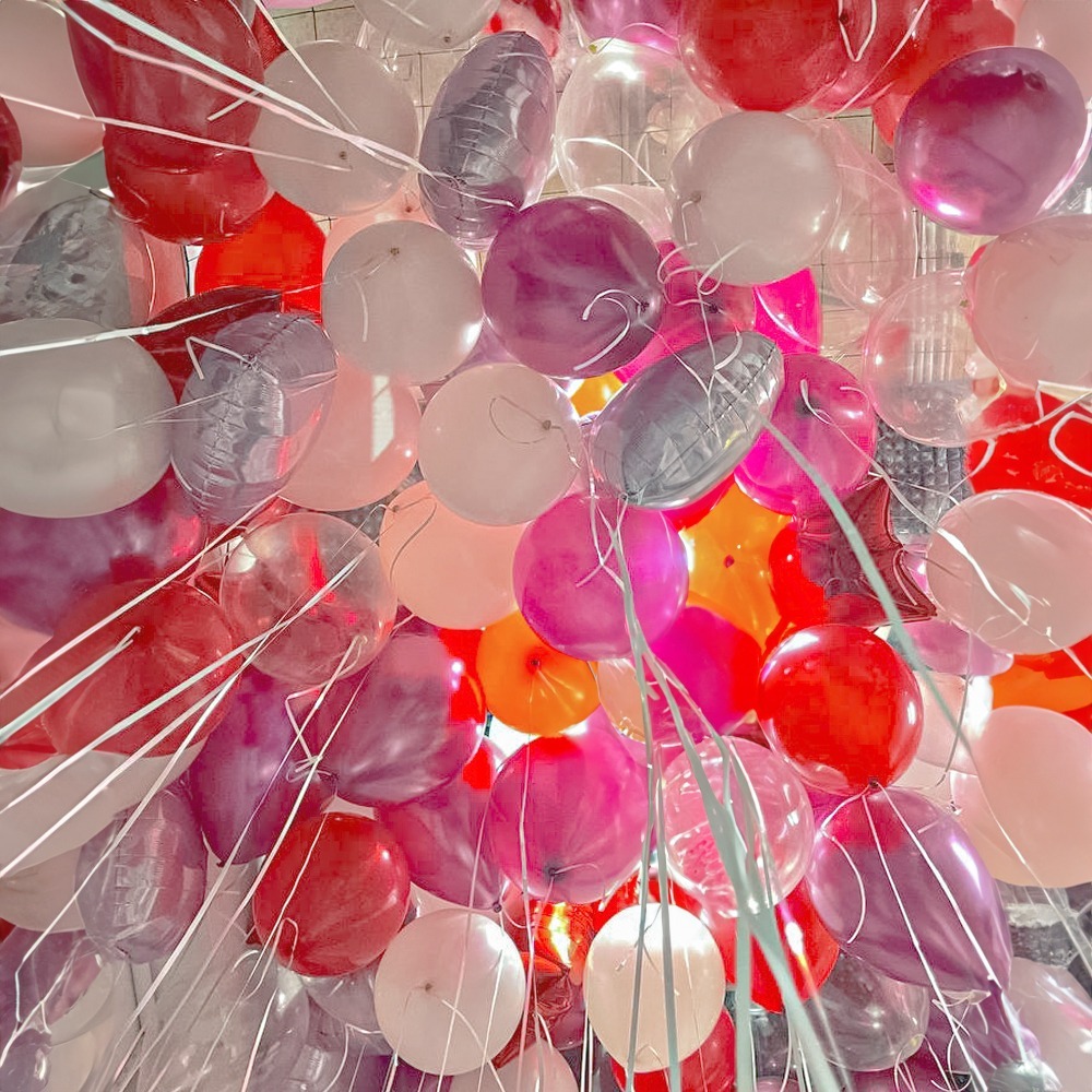 Разноцветные шары под потолок с надписью “С Днем Рождения”