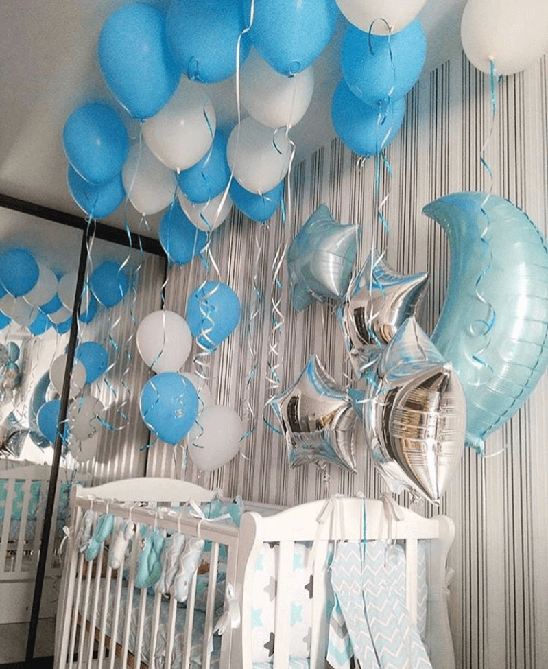 Набор из 20 воздушных шаров с фигурами из фольги на выписку для мальчика