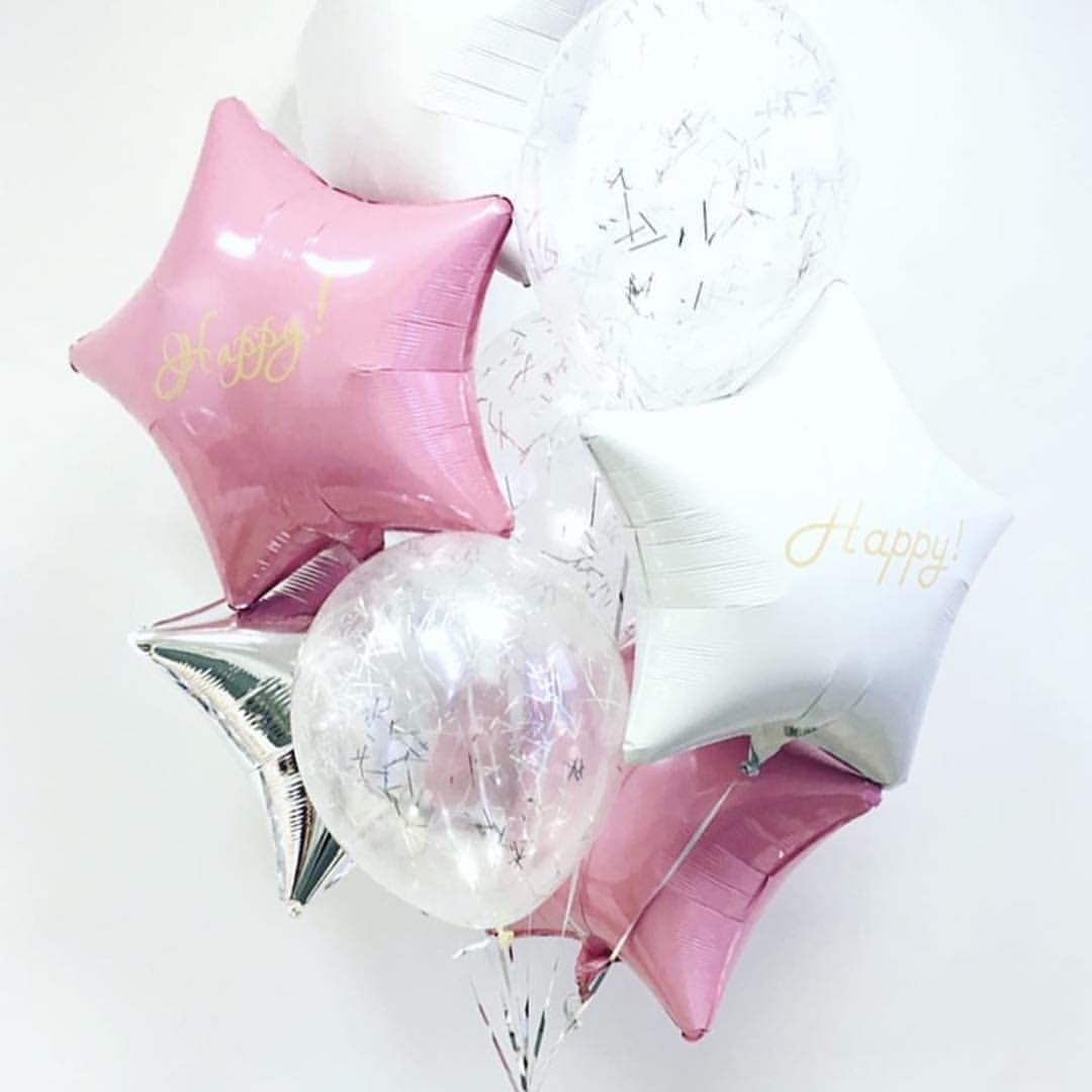Набор “Счастье” из фольгированных звезд и шаров с конфетти