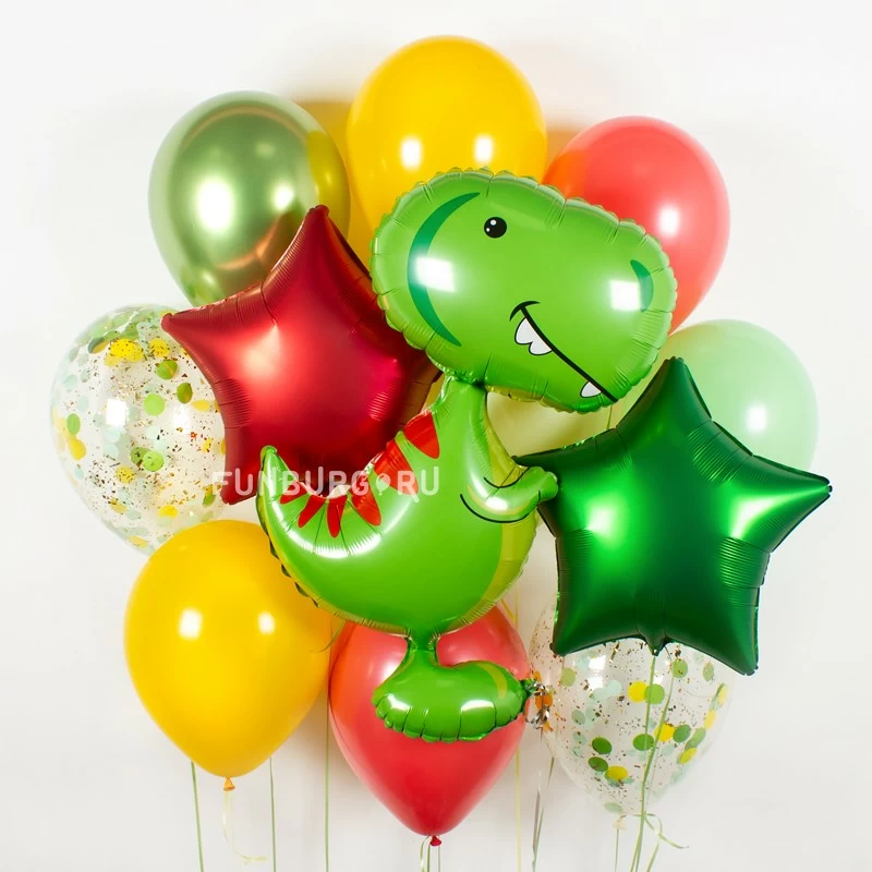 Милый забавный динозавр в окружении ярких шариков вызовет восторг у детей и точно заставит улыбнуться даже самого серьезного взрослого!