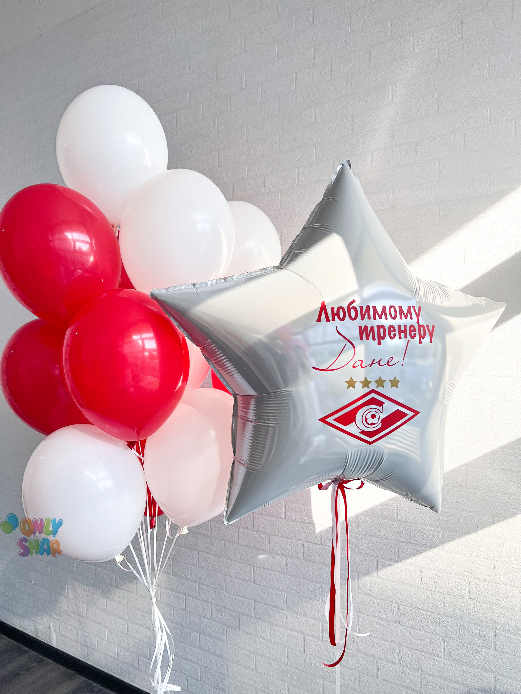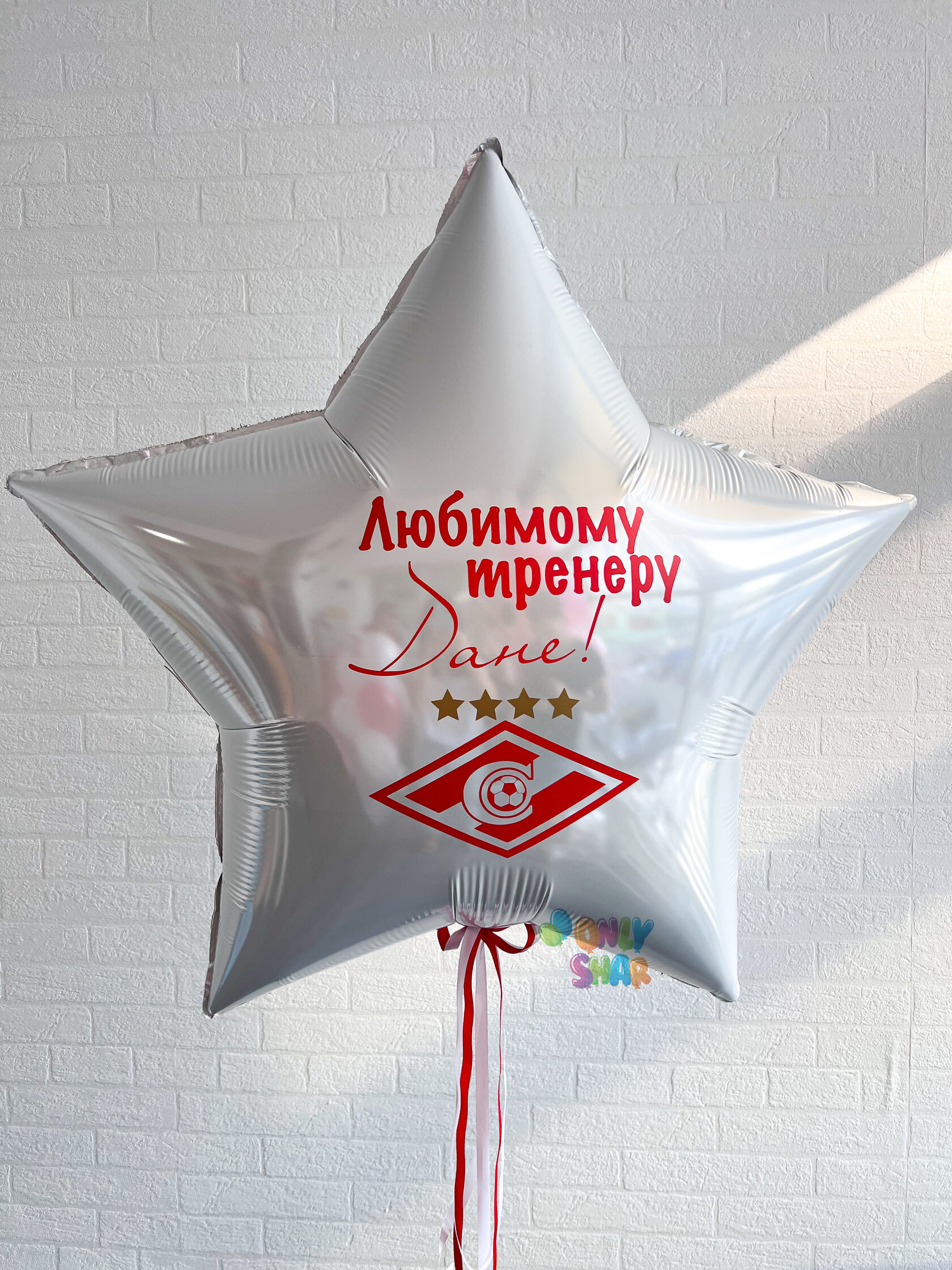 – Фольгированная звезда белая 80см с индивидуальной надписью