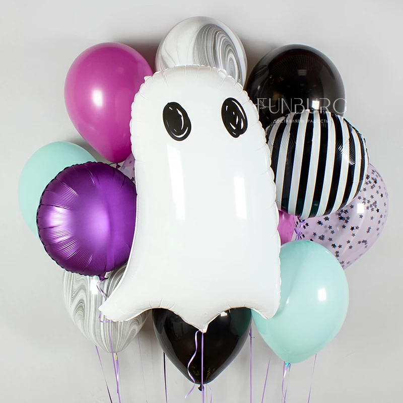 Набор с загадочным милым привидением и шариками в не совсем обычной, но очень гармоничной и мистичной цветовой гамме. Идеален для украшения самой веселой и красивой вечеринки к Хэллоуину и просто для любителей привидений и разных милых мрачностей!