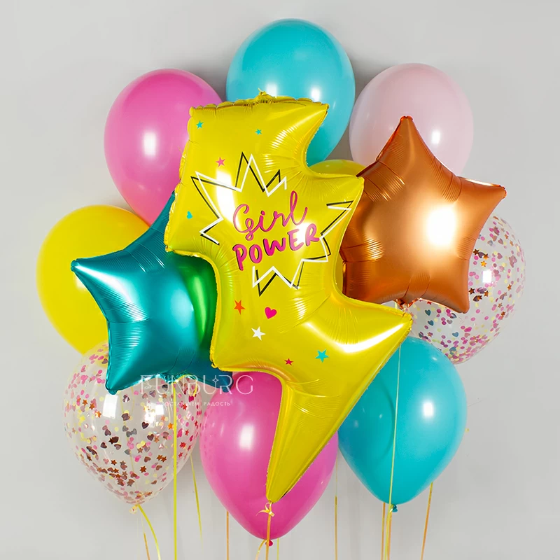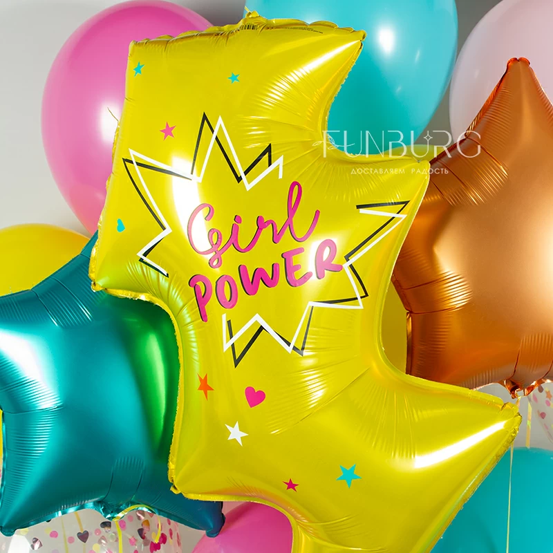 Яркий, дерзкий, девичий набор с большой молнией и надписью, полностью его отражающей – Girl Power! Для самых классных девчонок 😉 Надпись на молнии может быть абсолютно любой: просто напишите в комментариях к заказу желаемый текст, и мы нанесем его на шар.