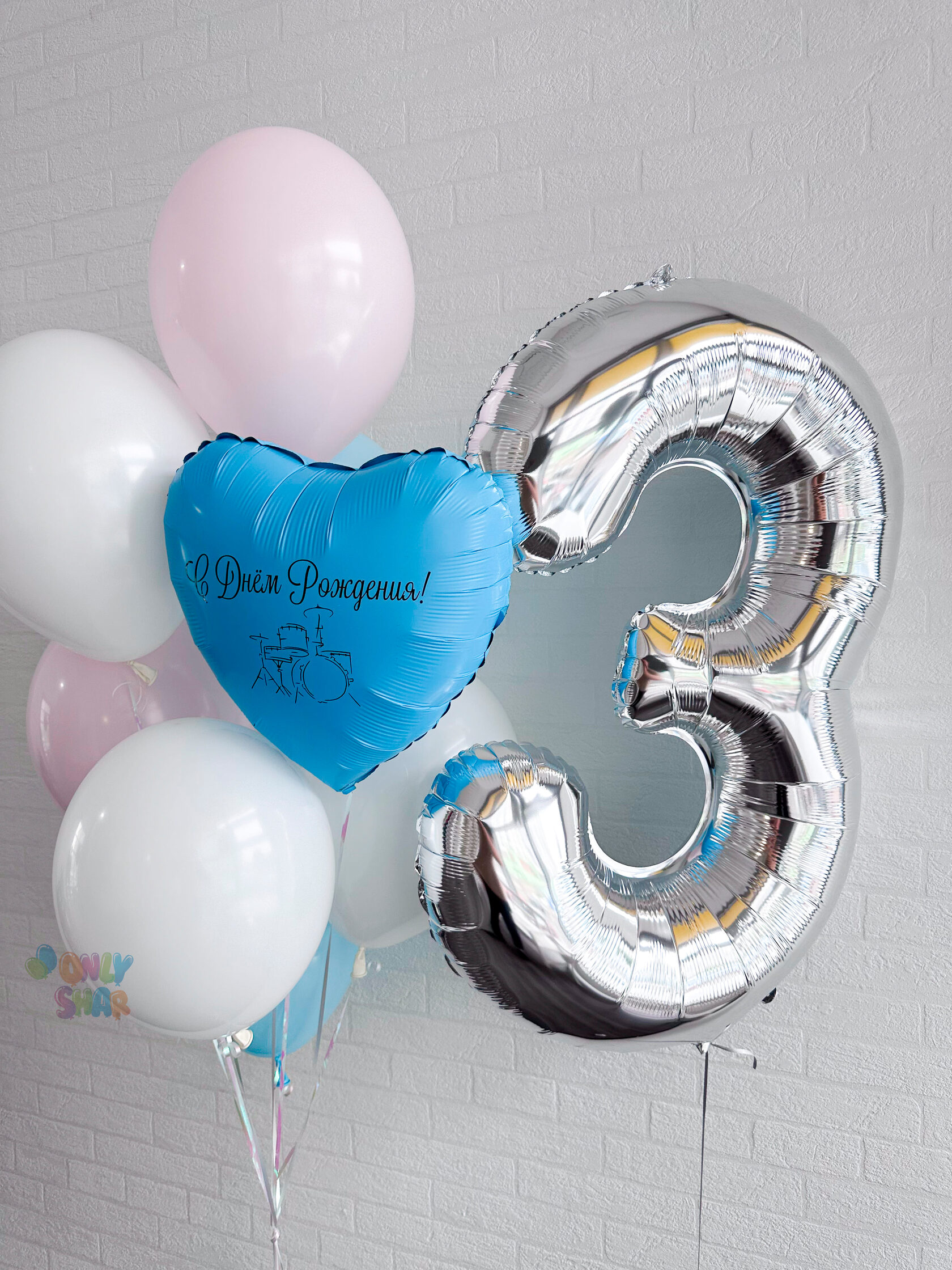 – 1 фольгированное сердце голубое 46см с индивидуальной надписью