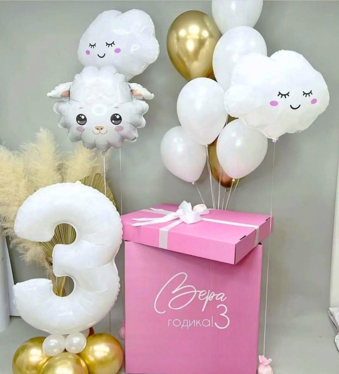 Набор шаров на 3 года с розовой коробкой-сюрприз