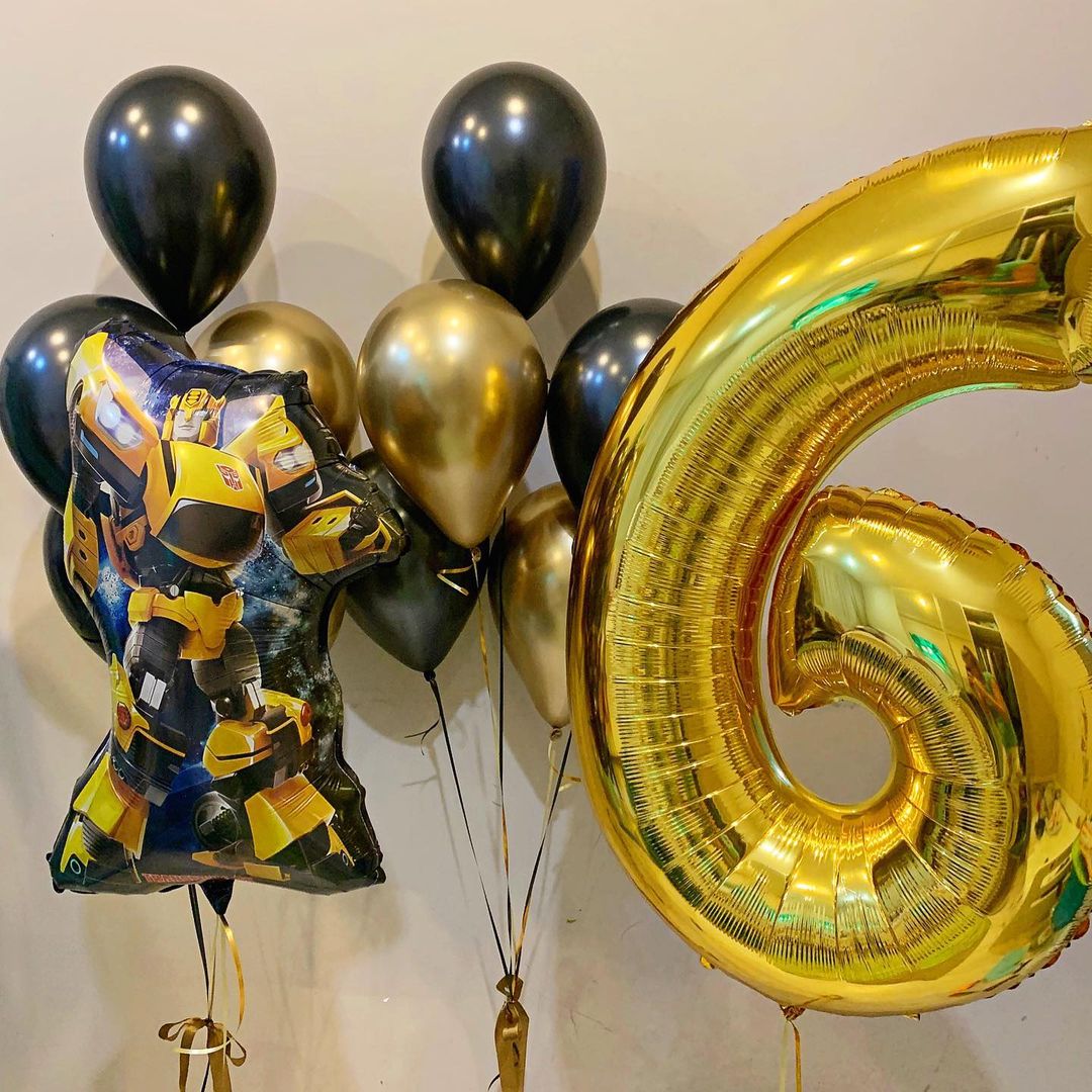 Набор шаров на 6 лет в черном и золотом цвете в стиле “Трансформеры”
