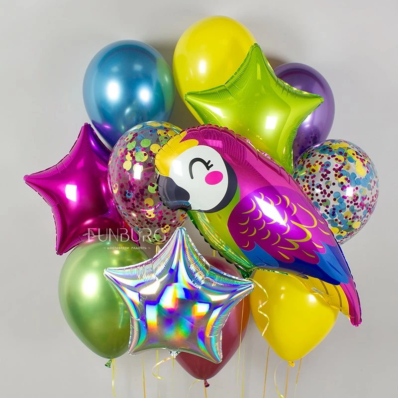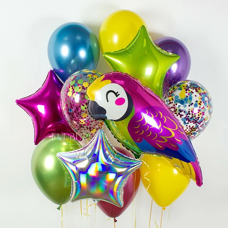 Взрыв ярких красок и блеска, дух бразильского карнавала и знойного лета! Этот набор с милым разноцветным попугаем идеален для тематической вечеринки, для подарка человеку, который озаряет жизнь всех вокруг светом и радостью, или тому, кто очень нуждается в порции ярких красок.