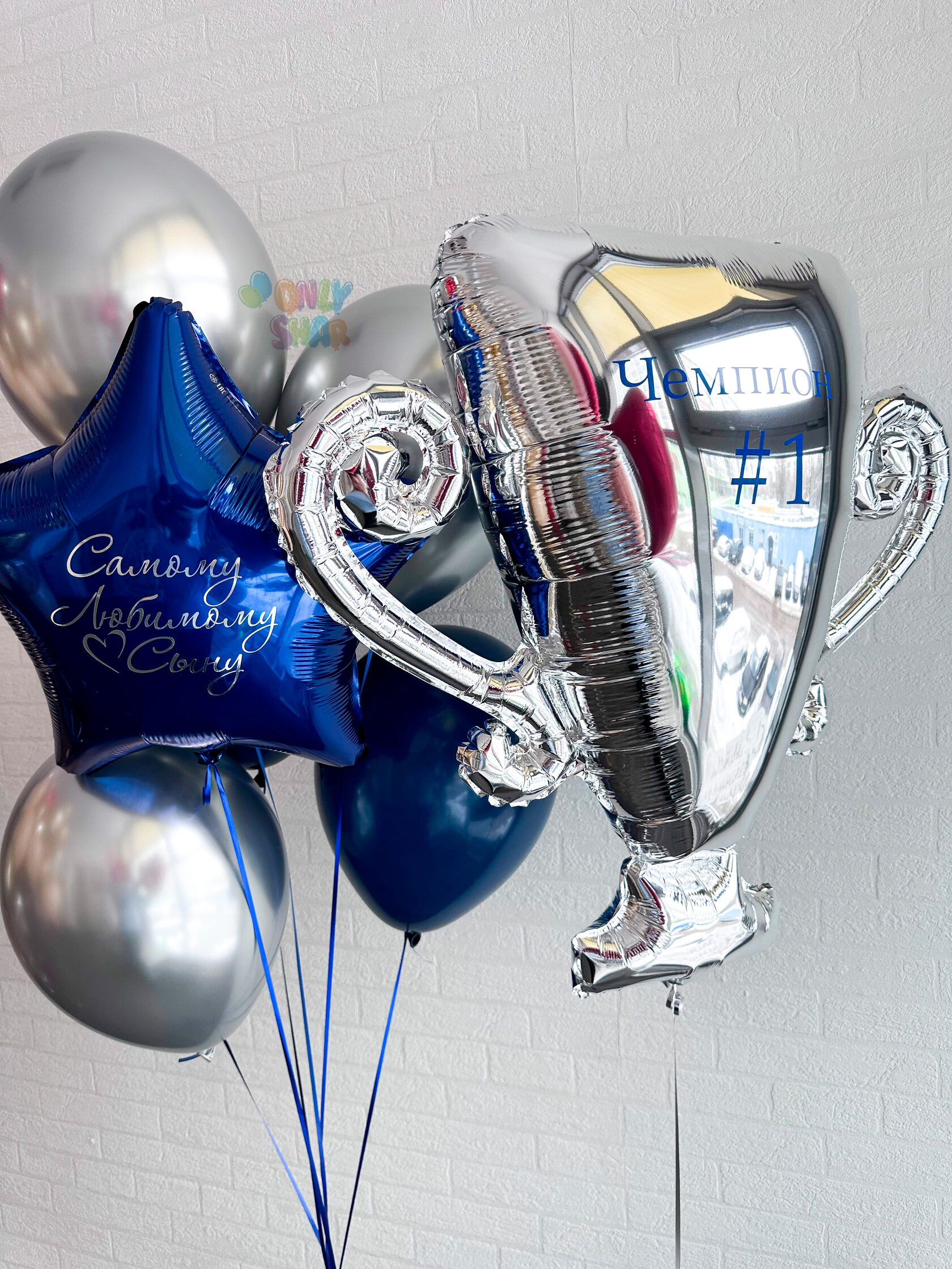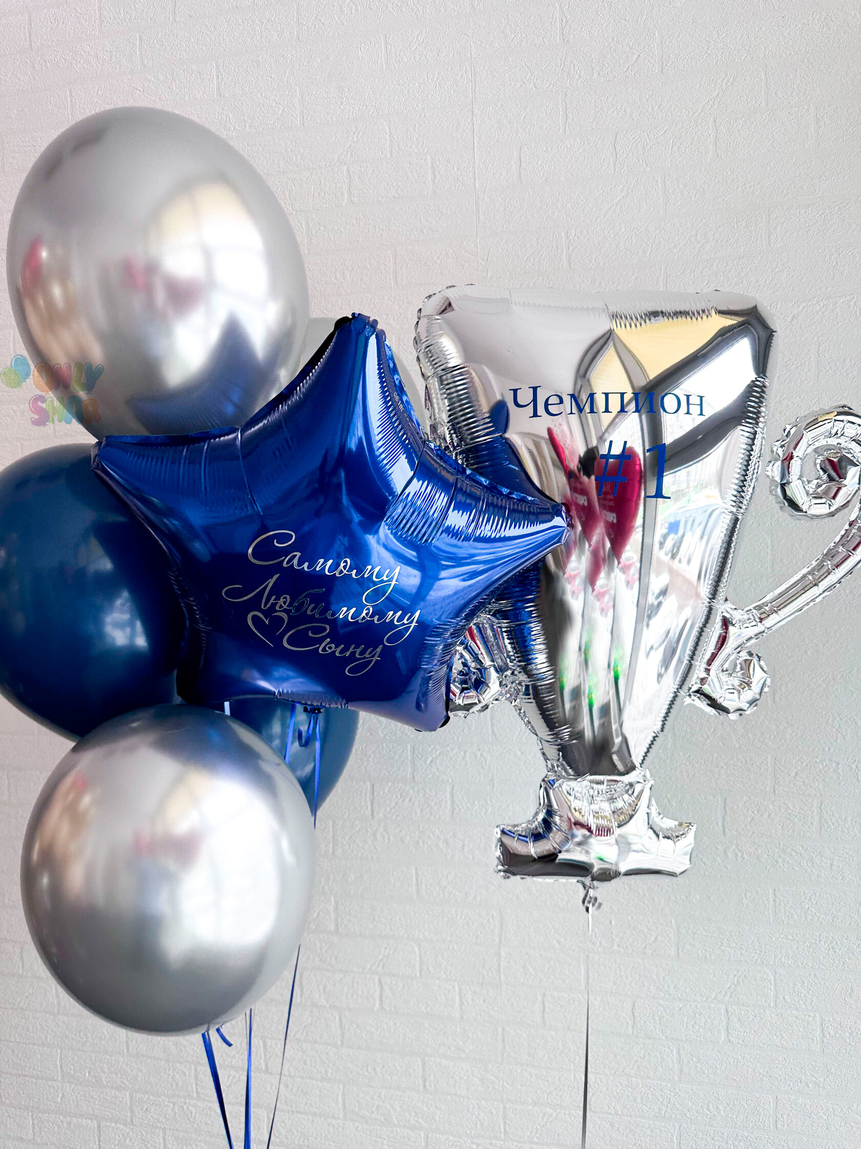 – Фольгированная фигура “Кубок” серебро с индивидуальной надписью