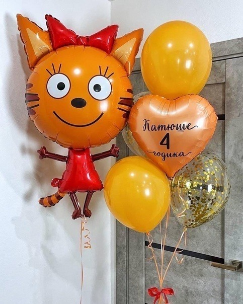 Набор шаров с вашей надписью на сердце и с фигурой “Карамелька”